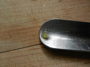 Now, back to the baggie. This is what you might call “controlled germination” instead of just sowing seeds with abandon, but there is a slight flaw in this plan. Can you see the seed? Nor can I. In fact, I have to scan each baggie every couple of days with a magnifying glass. If I see one seed germinated, I get excited, but not delirious. I wait one or two more days, and if a large percentage have germinated, then delirium sets in.