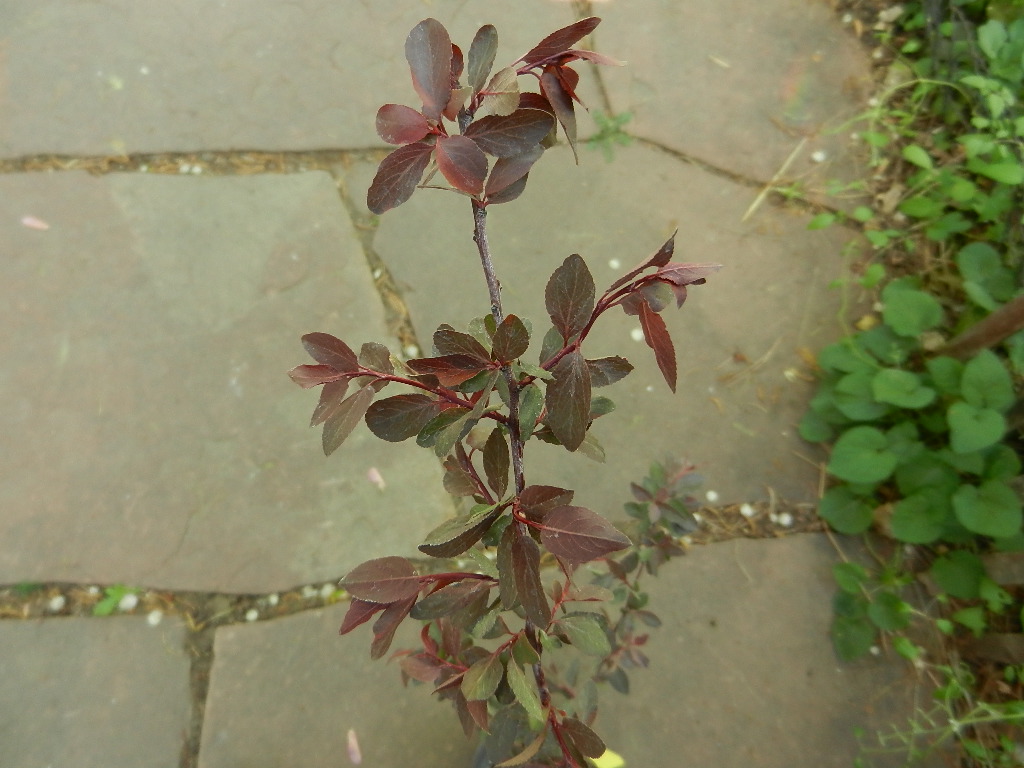 What looks like a cross between Prunus andersonii and the purple-leafed sand cherry, from Agua Fria Nursery: