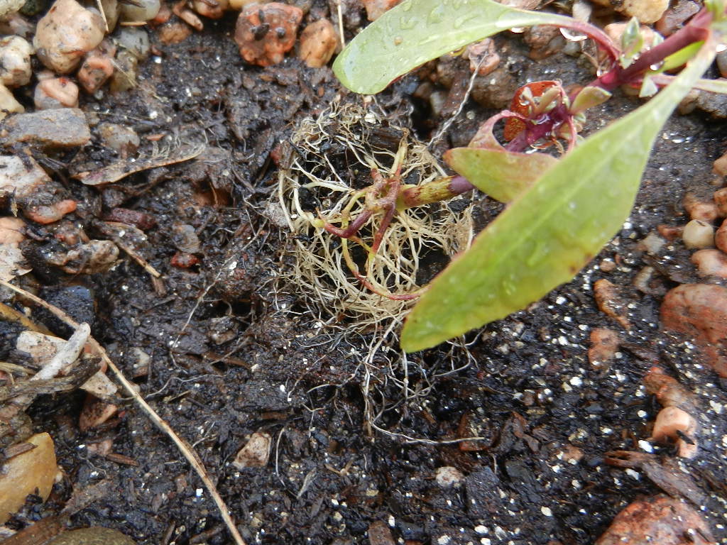 Not a scene from Fringe. The roots have had most of the soil-less mix washed off by directing a stream of water at them from a watering can (not a hose; too easy to lose control).