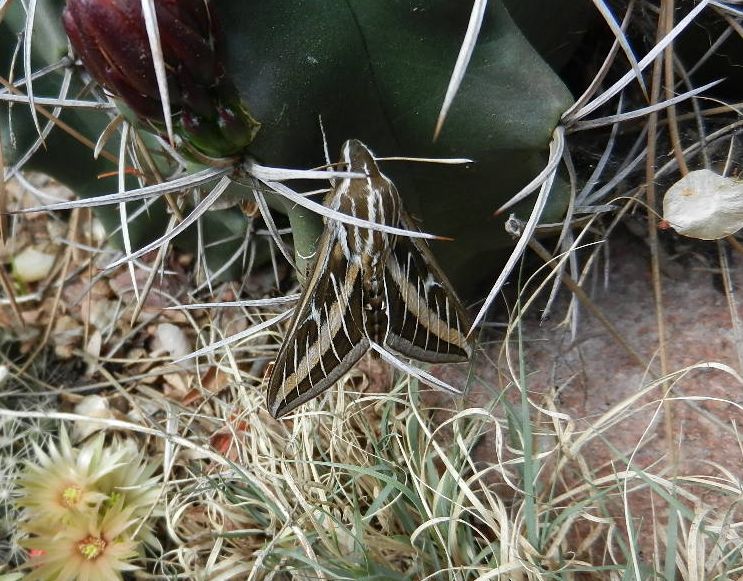 The “White Sands form” of E. triglochidiatus (or the other one) only has one flower open so far, but I noticed someone taking a nap on it this afternoon.