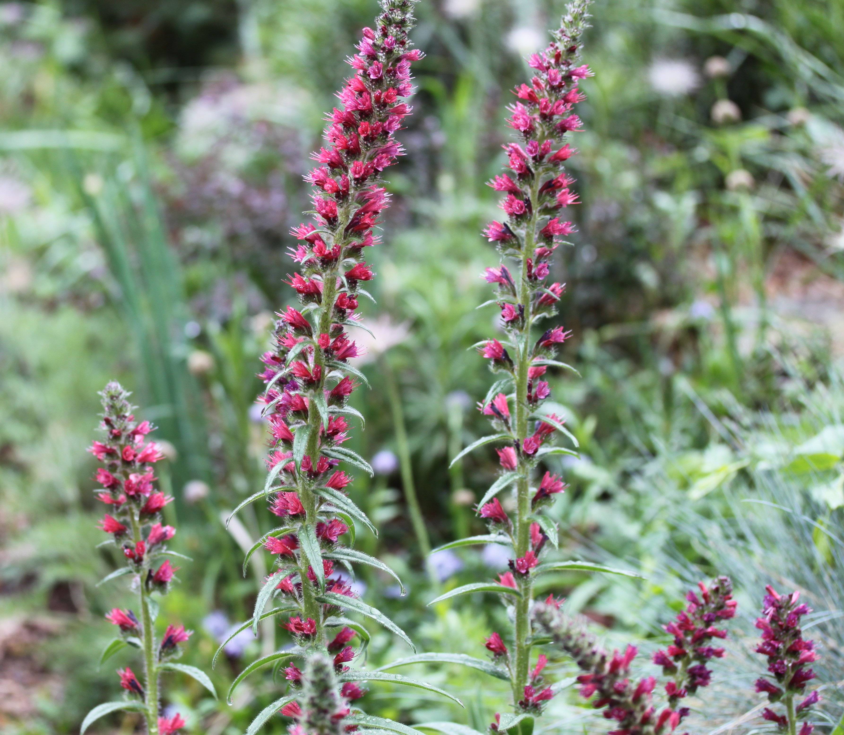 And another member of the borage family, Echium amoenum. It has the very attractive habit of seeding all over the rock gardens.