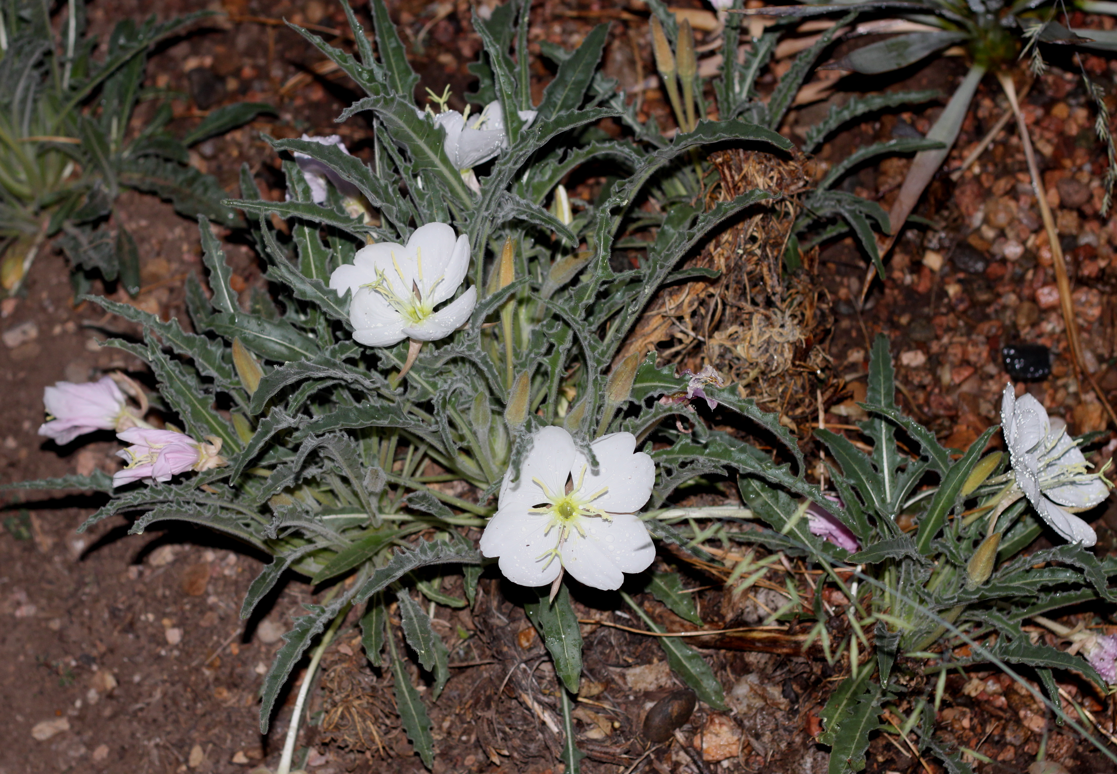 Here is Oenothera caespitosa again. It would be cool if I could capture what they really look like, glowing white in the twilight, but the flash decided to pop up, and figuring out how to take moonlit shots means reading more instructions.
