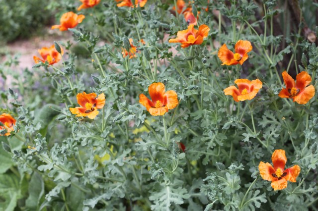 I think you can’t have too many glauciums. They seed around, so it sounds like you could have too many, in theory, but when they bloom, you realize you can’t. Practically everyone knows the horned poppy, Glaucium flavum, and this one, G. acutidentatum, has become common too. There are bright red ones as well, like G. arabicum and grandiflorum. I need those badly.