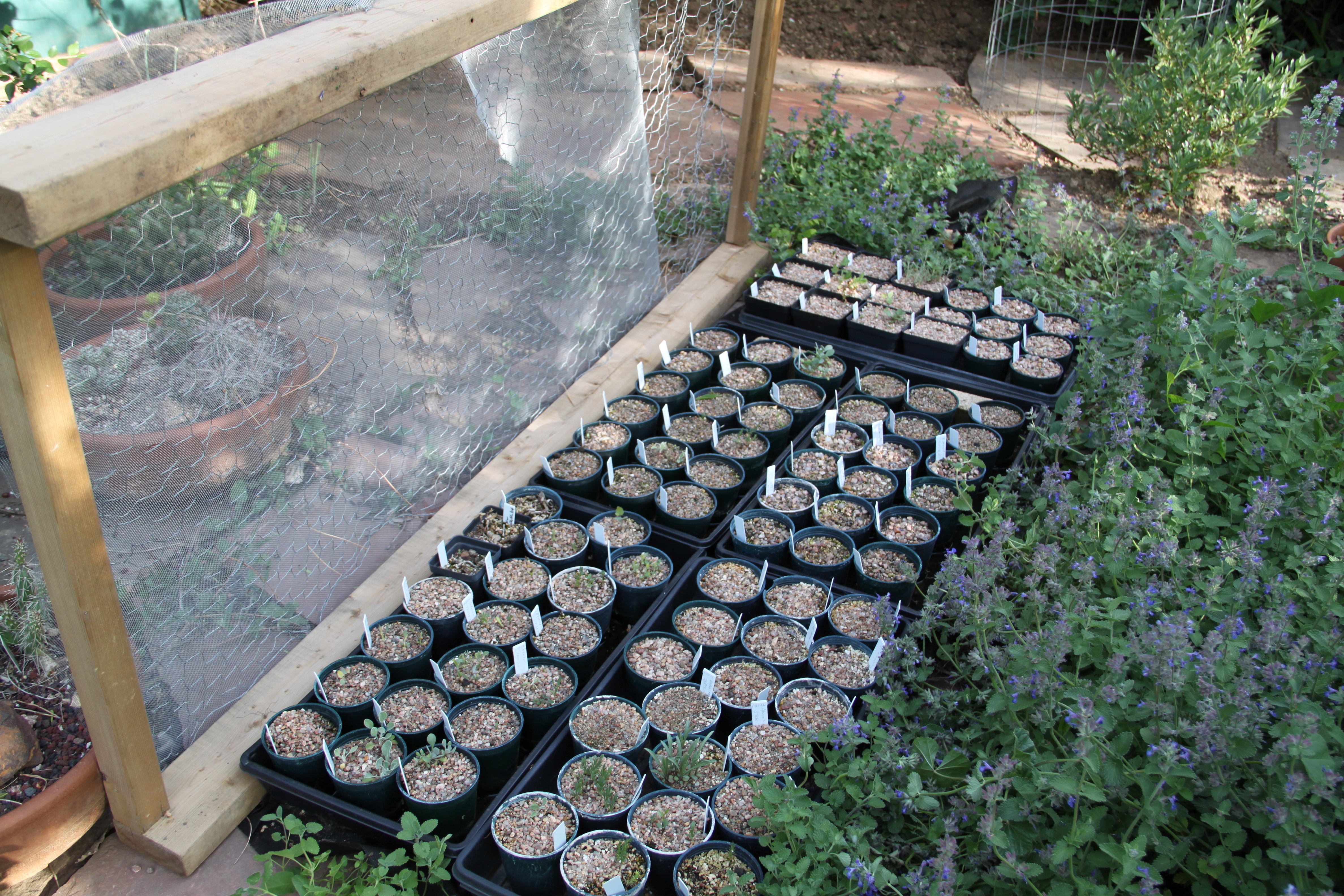 In the seed flat farthest away there are some shrubs germinating. Mountain-mahogany, etc. Why a person who’s going to be 61 this year indulges in activities like germinating shrubs and trees from seed is one of gardening’s great mysteries.