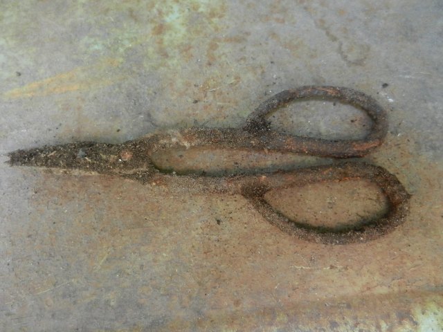 The compost pile is gone now, but quite a bit of the compost is still there, and I was spreading some on the new blue grama seed just now, when the shovel brought up what first looked like a metal pretzel, but I knew it wasn’t that. It was the scissors, after all these years. I instinctively turned to tell her, but she wasn’t there. No reply of “I told you so.” Nothing but silence, and these rusted scissors.