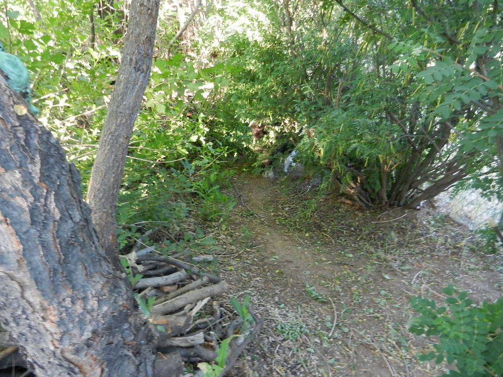 The back garden. I pile dirt back here. And that path does lead somewhere ….
