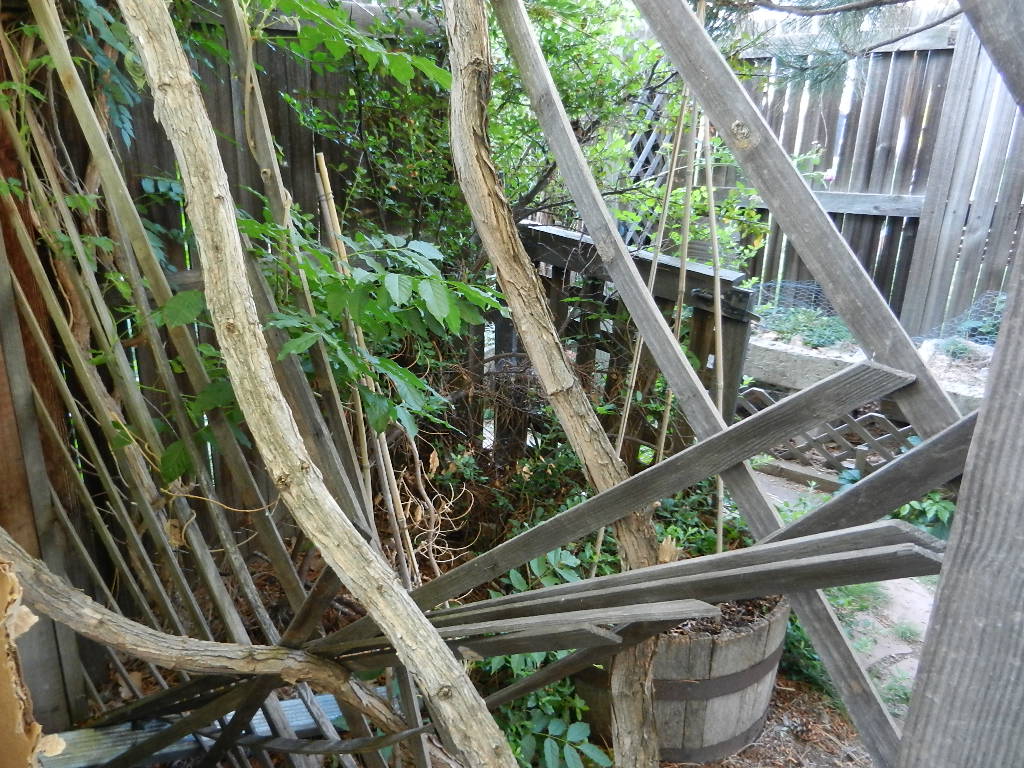 Then, the trellis. I made this all by myself. Bought the lathe and glued it together. This was my first and last project in the garden.
