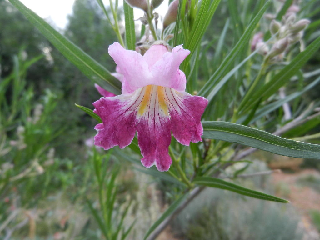 I worked outside all day yesterday in 96 degree heat (but only eight percent humidity), so I didn’t feel like doing much today, and don’t have anything fascinating or brilliant or hilarious to say about this plant, but will quote at length from A Natural History of Western Trees by Donald Culross Peattie, who called it the Desert Catalpa. (You …..yes, you, if you’re reading this….are crazy, if you like trees and don’t own this wonderful book.)
