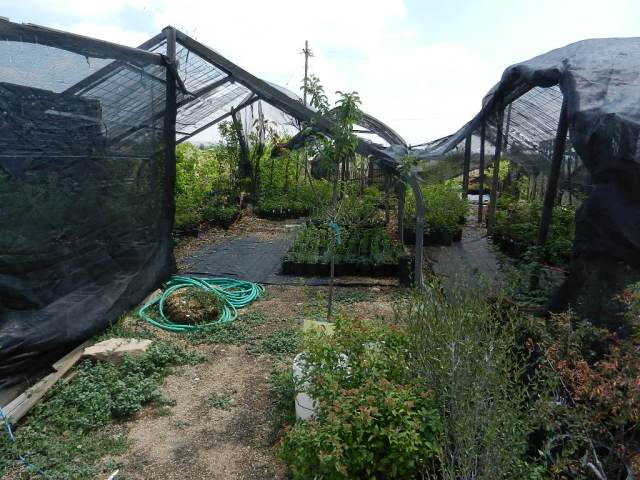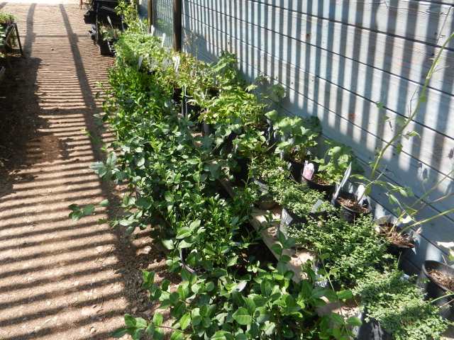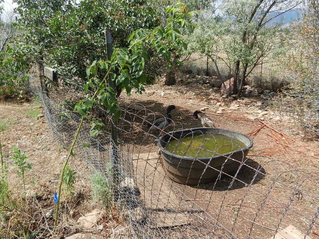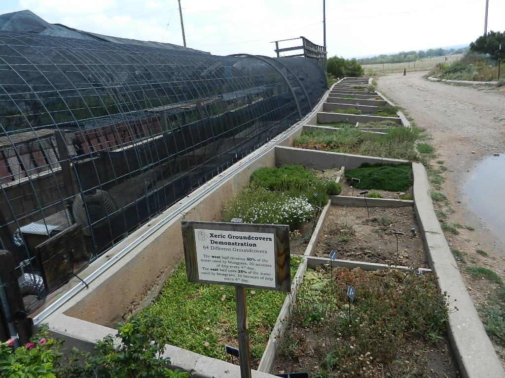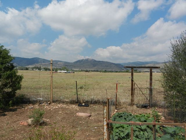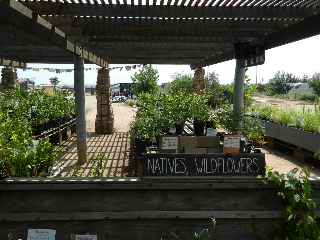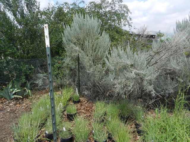 The unirrigated, windswept garden on the west side. The pea shrub, Caragana arborescens, has dropped its leaves in response to drought. They do that here, too, but so far not this year.