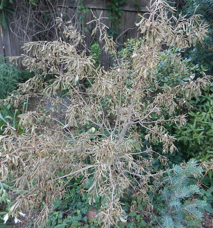 A dead Daphne giraldii. It was doing fine, even last week, until one day it wasn’t. Just like that. Okay one day, then wilting, then this.