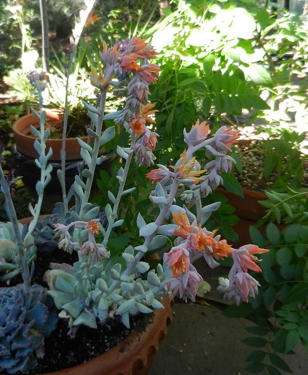 Plants in containers are the obvious solution. I’d get more summer color that way, and I like the look of the echeverias I recently jammed into a pot so the garden wouldn’t look like nothing but a bunch of dried-up sticks.