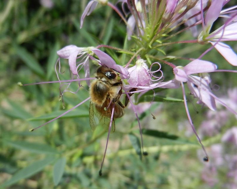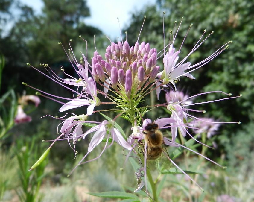 The bee plant, an annual, aka the Rocky Mountain bee plant, Cleome serrulata, also known as Navajo spinach but according to Moerman’s Native American Ethnobotany practically everyone cooked it (seeds too,) is so easy to grow I plan to harvest the seeds and sprinkle them everywhere in the garden this fall. That’s all you do; sprinkle the seeds, which are produced by the thousand, and next year, bee plants.