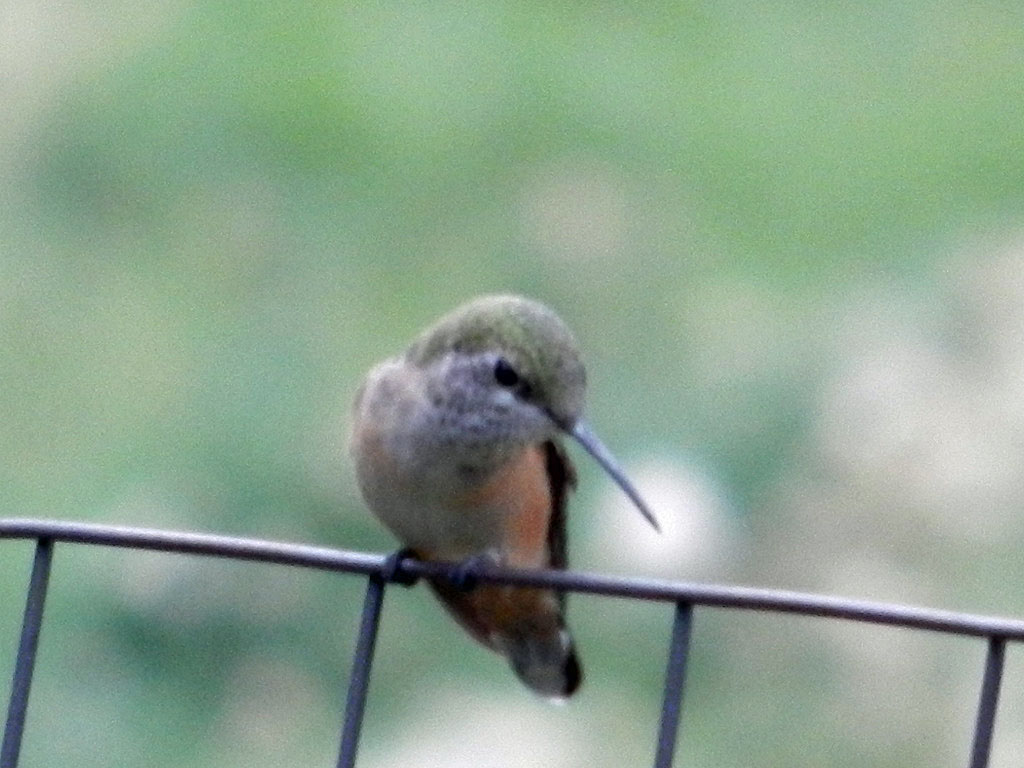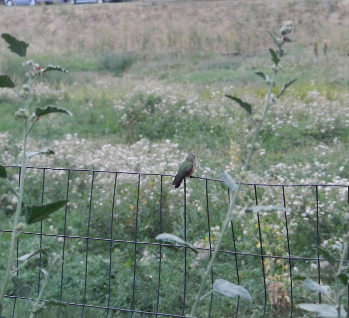 Completely ignoring me. At first I thought this was a female calliope, but I guess it’s a female broad-tail. She’s not very big. About fifteen feet away.