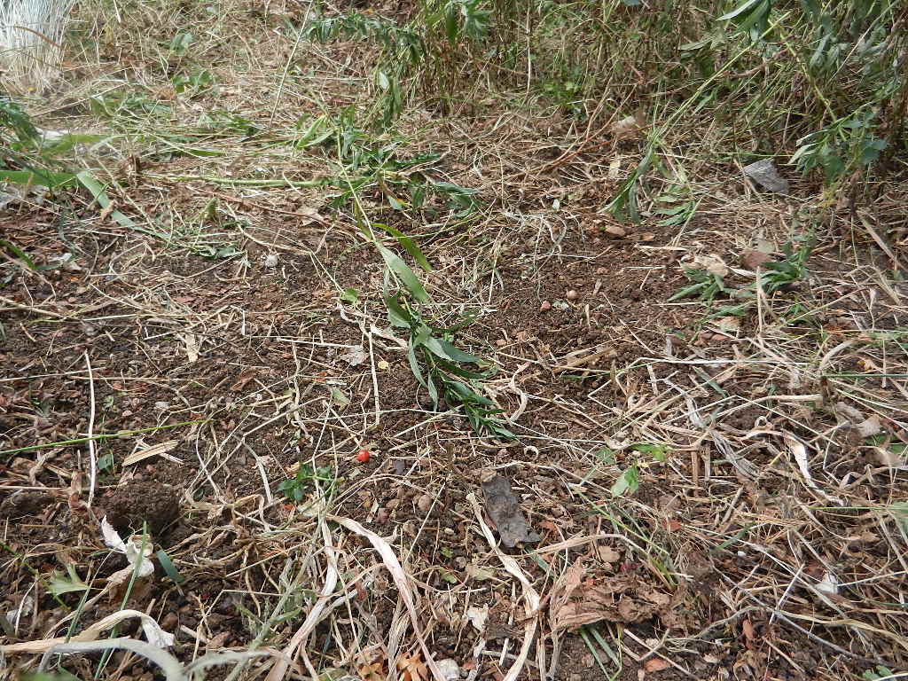 Naturally I gave the thing a tug, and the clematis was pulled to pieces, but at least the top of the prickly lettuce is dead. (Hanging down in defeat, on the right side of the cage.)