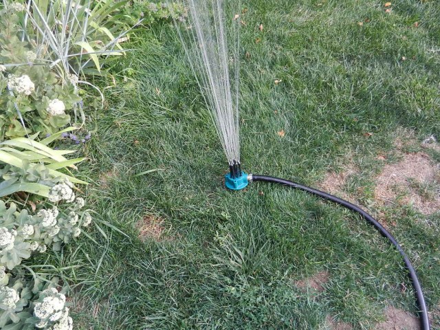 The Noodlehead sprinkler is really useful for putting down a lot of water in a very short time. I got this from Nicke’s Garden Talk. You can spread out the “noodles”, or bunch them together to point in a fairly specific place.