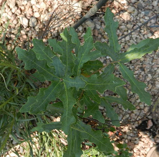 The ones labeled Quercus undulata are what most botanists consider to be hybrids with Q. gambelii and another species, the latter being practically anything, I guess. Oaks that are evergreen in their native habitats, like Q. grisea, are not completely evergreen here.