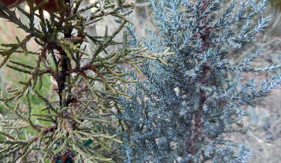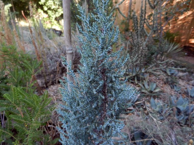 This was a very nice extra-blue form of Juniperus monosperma that I picked up for a song at a nursery-closing sale. I planted the live one in the place in which it’s growing now, and the dead one, which was alive when I planted it, of course, in another place. Then I moved it. That place didn’t seem right so I moved it again. It was going to get too big in that spot, so I moved it again. It died almost at once.