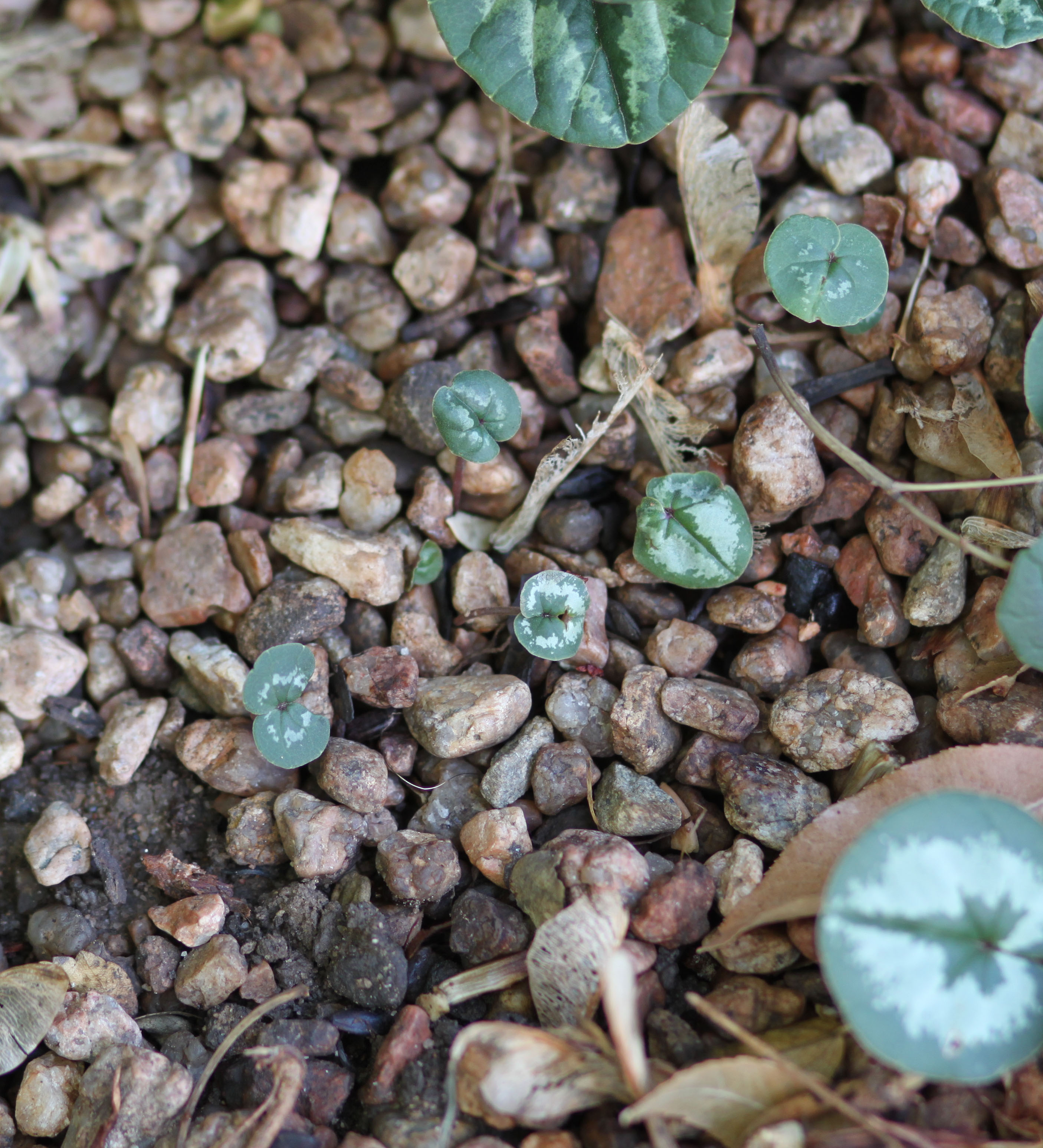 Anyway, it’s nice to sit in a chair and only think about things like this, and have both feet firmly on the ground. It’s raining again, sort of, and I noticed yesterday some teeny tiny cyclamen emerging near the parent plants.