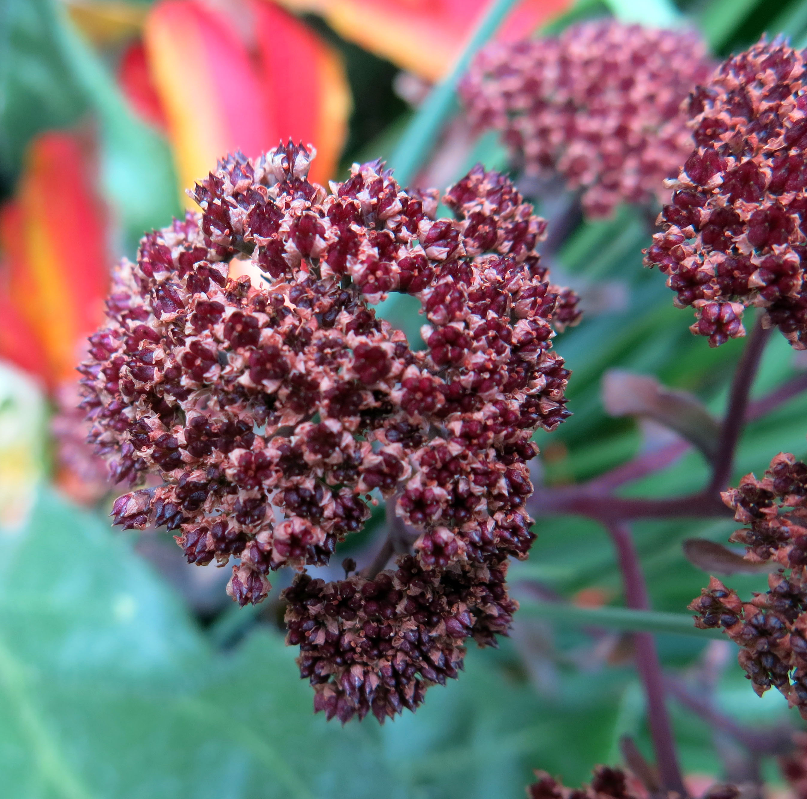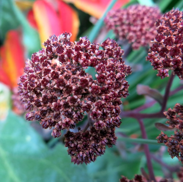 Dried flower heads of Sedum ‘Xenox’. What a weird name.