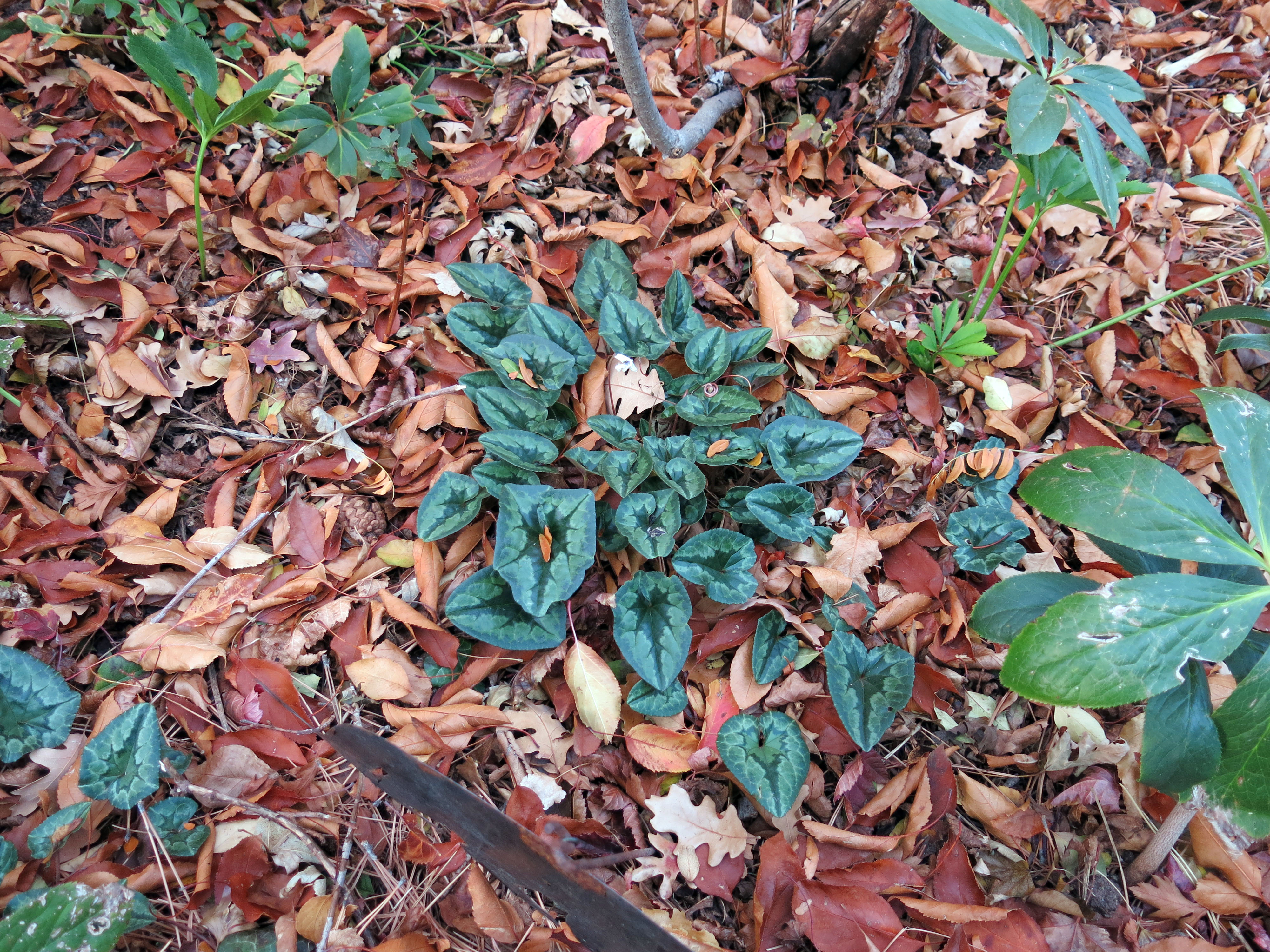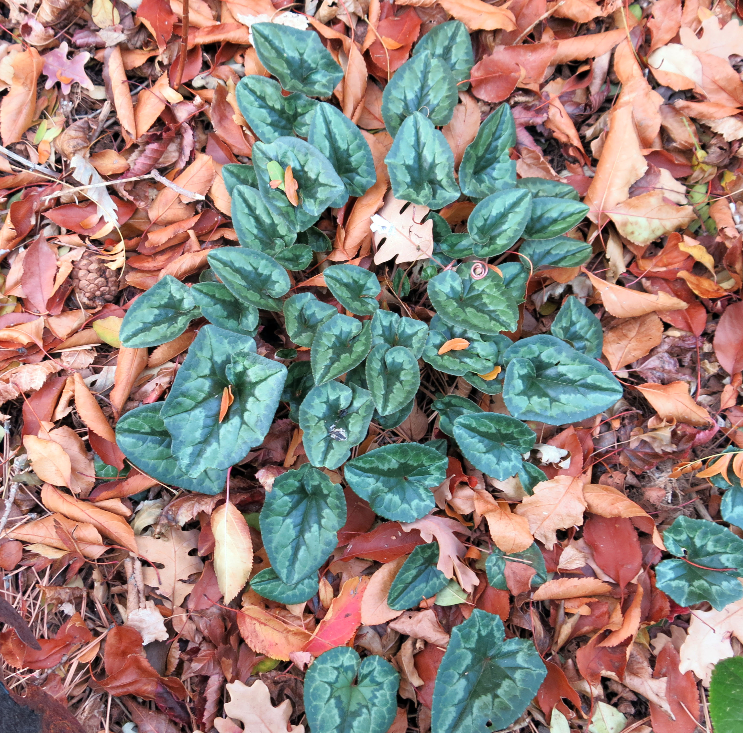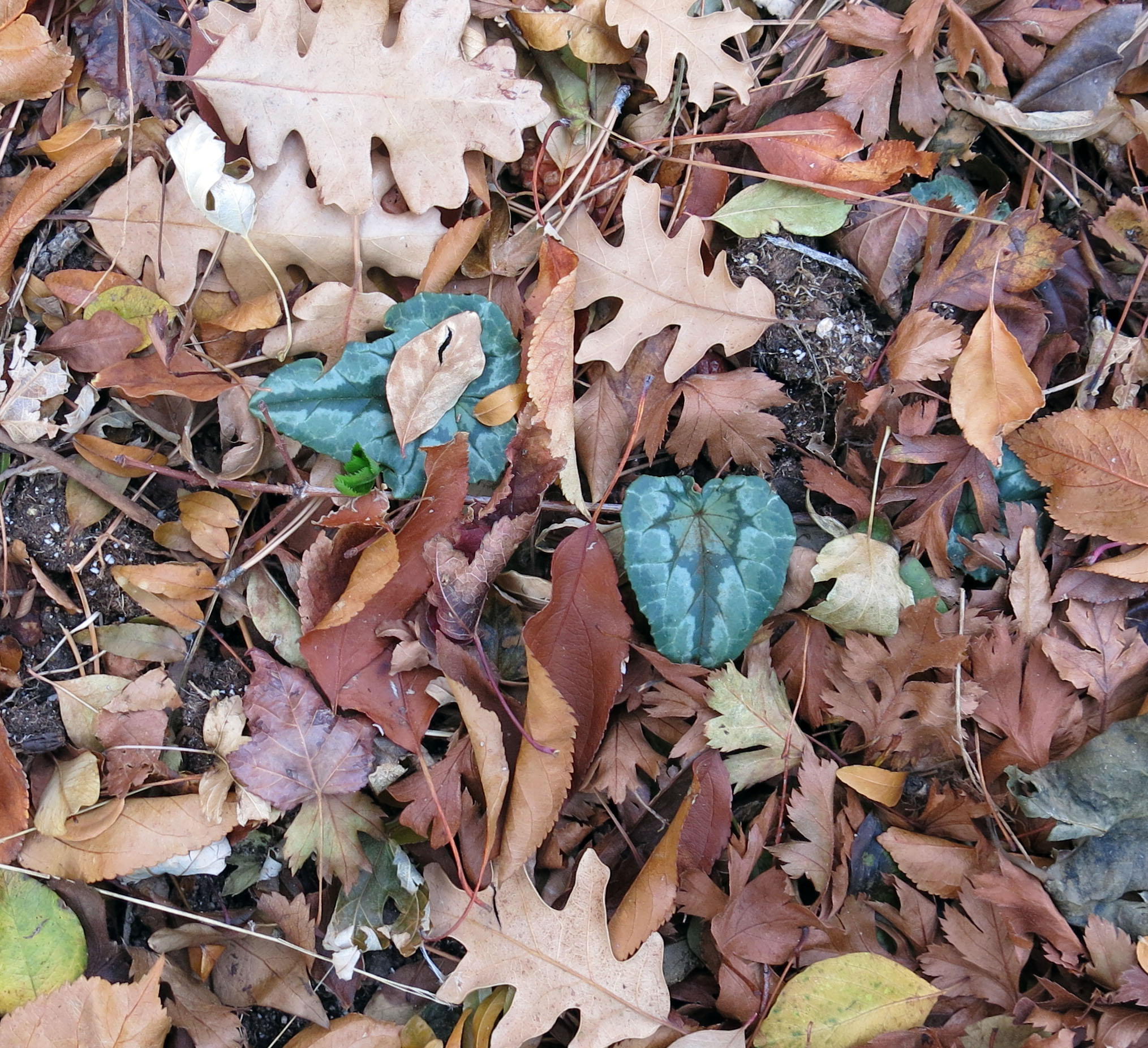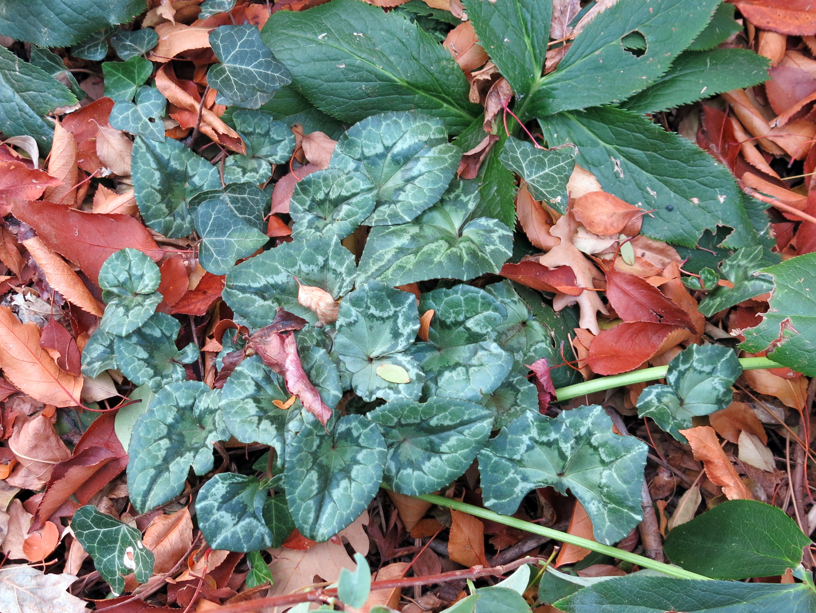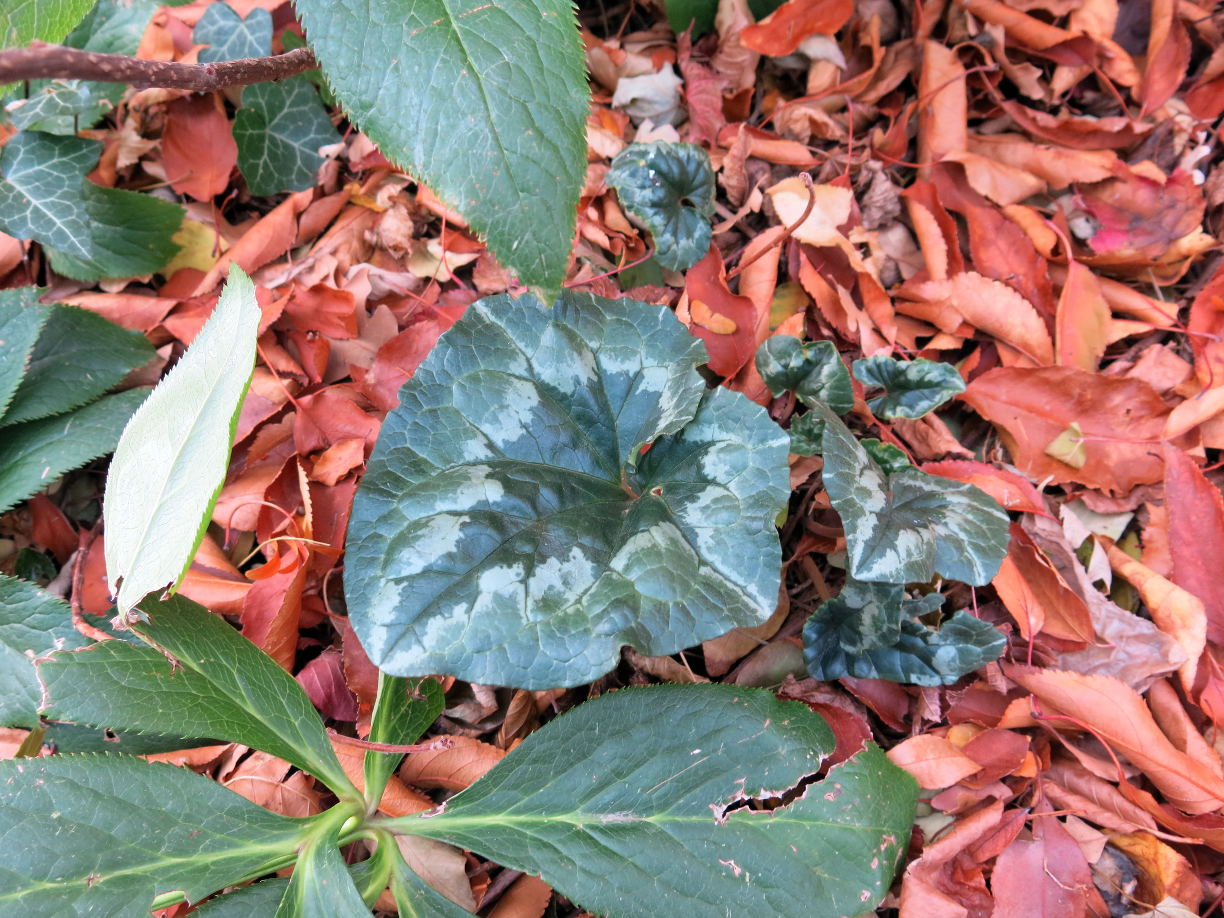 The reason I went out there, really, was to look at the leaves of Cyclamen hederifolium. (Visible in the picture above if you click on it to enlarge it; next to the French scare-cat.)