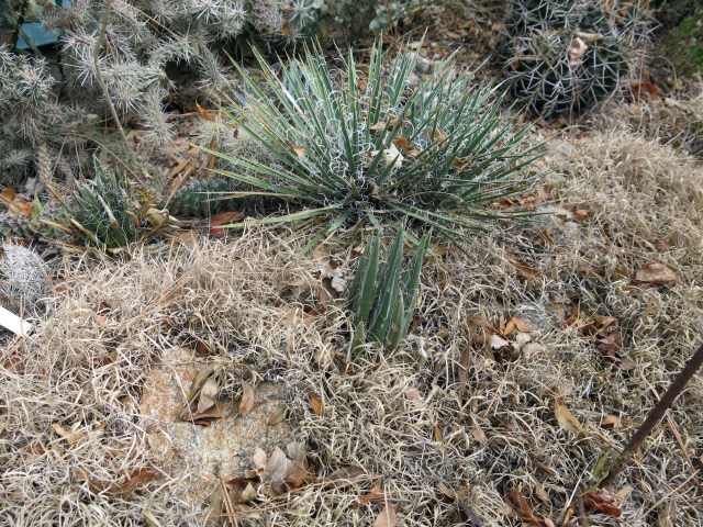 This is scary too. There are two metal things that keep me from walking into this. You can see part of one of them. I think the little yucca is called Yucca nana, and the agave is Agave toumeyana var. toumeyana. (I told you I was smart.)