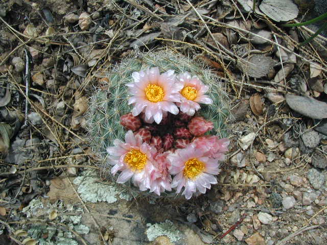 Solitary bees pollinate the pediocactus. (I looked this up, just now, in Hochstatter’s book on pediocactus.)