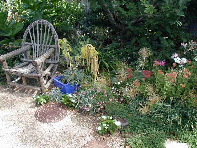 These are some wonderful images of garden decor! I really love the glass flower on the stake. And all the cute little frogs.