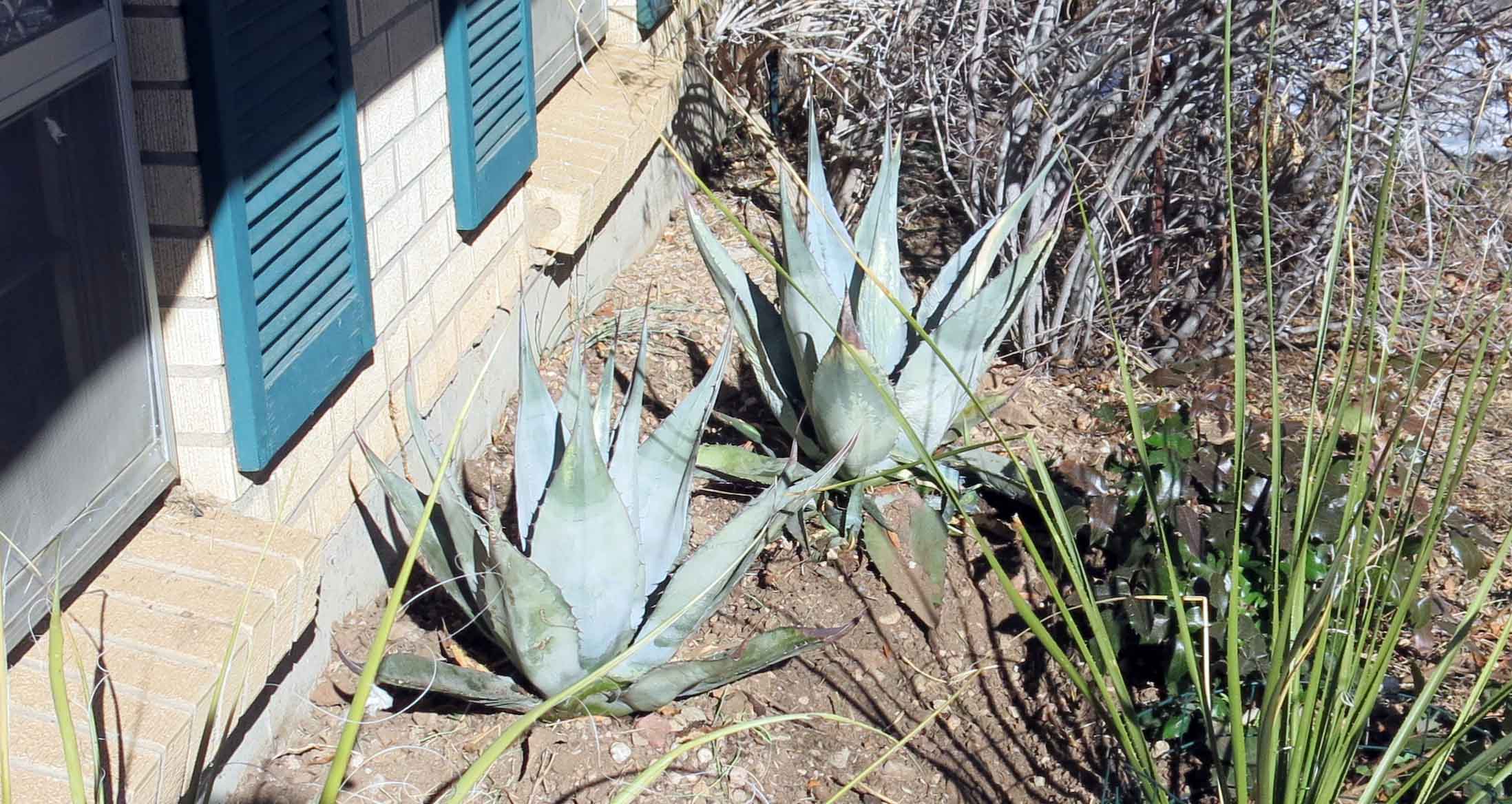 The third one of these agaves is in even worse shape. The regular Agave havardiana visible behind it put it to shame. I might rescue it, and then again I might just let it die, and be a warning to any other plants that might go into the garden. Maybe hang its corpse from a post, or something.
