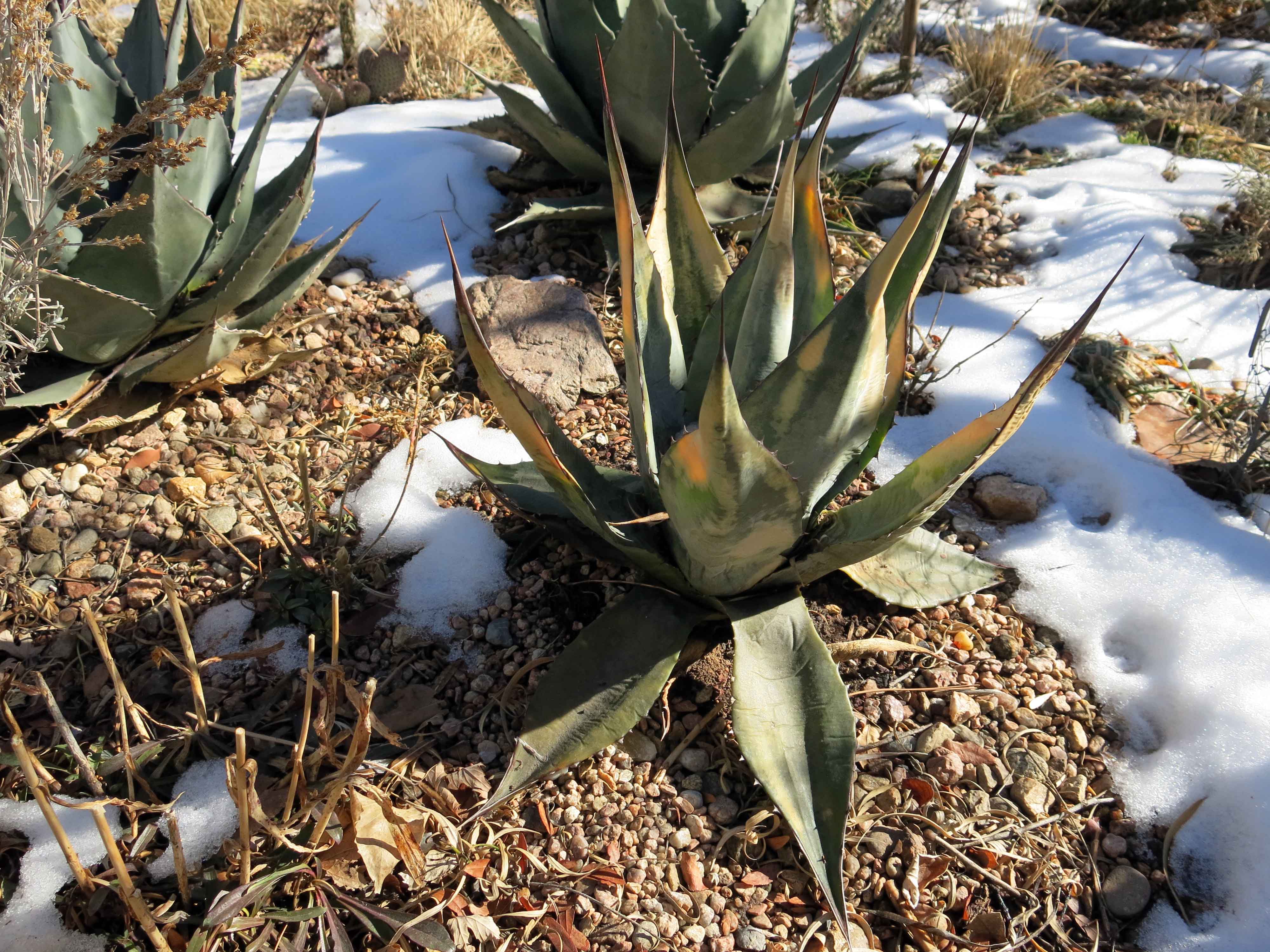 Another agave rescued this morning. Now that I’ve become a second Stanley Kubrick, I could have filmed the process, but, believe me, digging up a ten-ton wimp of an agave and carrying it to its new home, slipping and sliding in mud and snow, and trying not to step on, or fall onto, a cactus just waiting for me to do exactly that, is not a whole lot of fun.