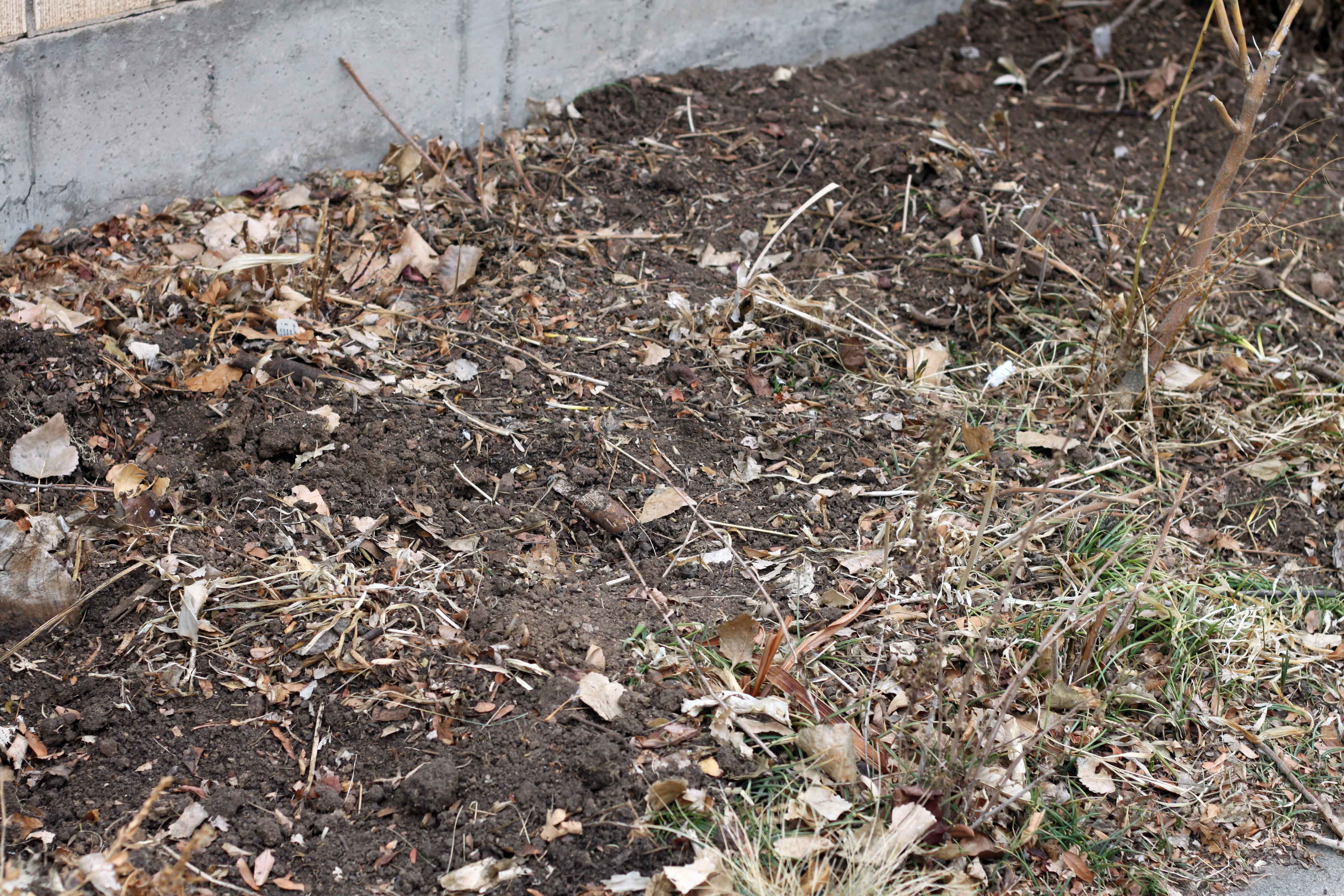 This is the front bed after doing a little bit of work yesterday. The hellebores have been moved, but the tree peony is still there. I had to backfill the dirt around it after discovering the true nature of its root system.