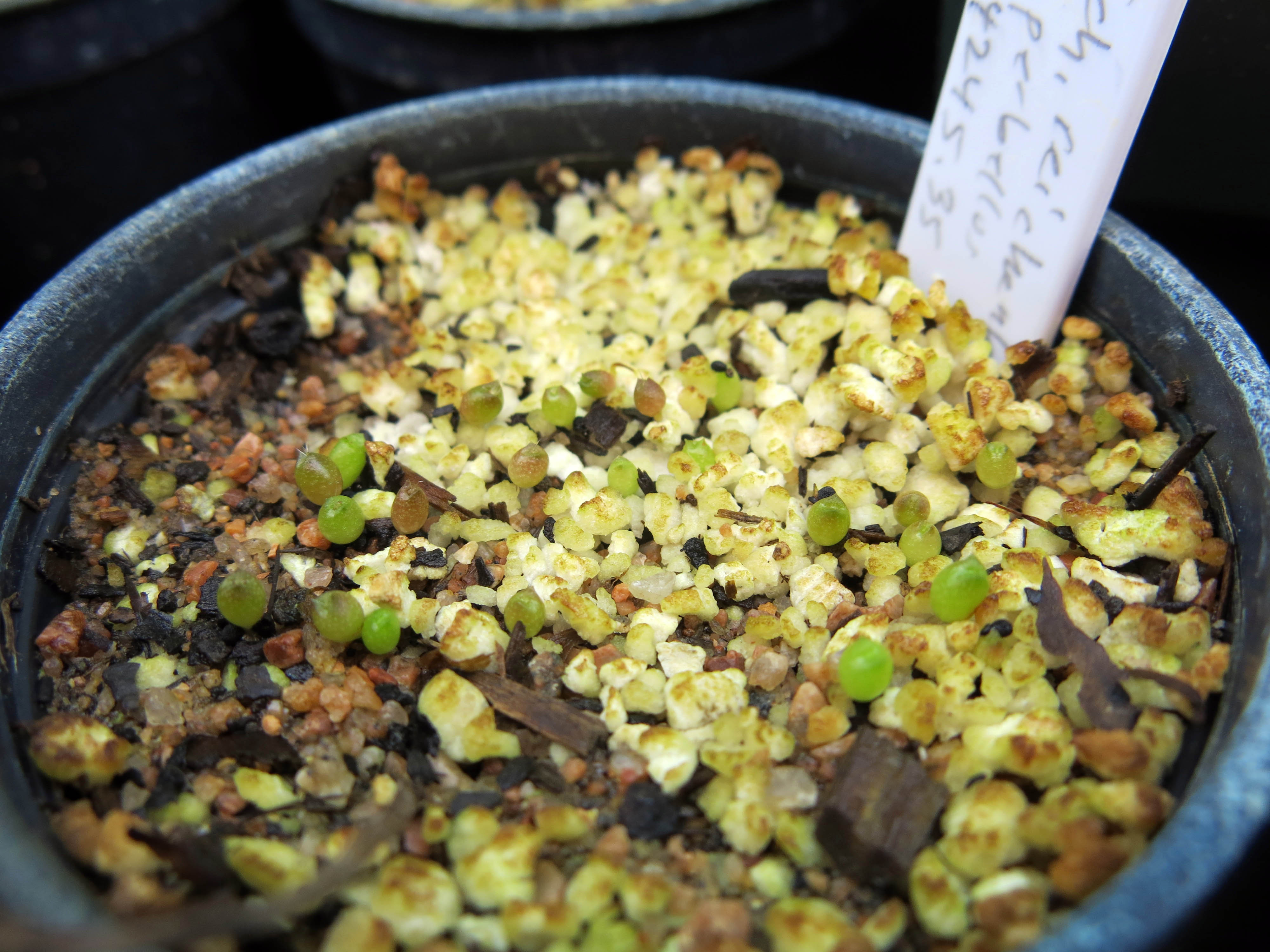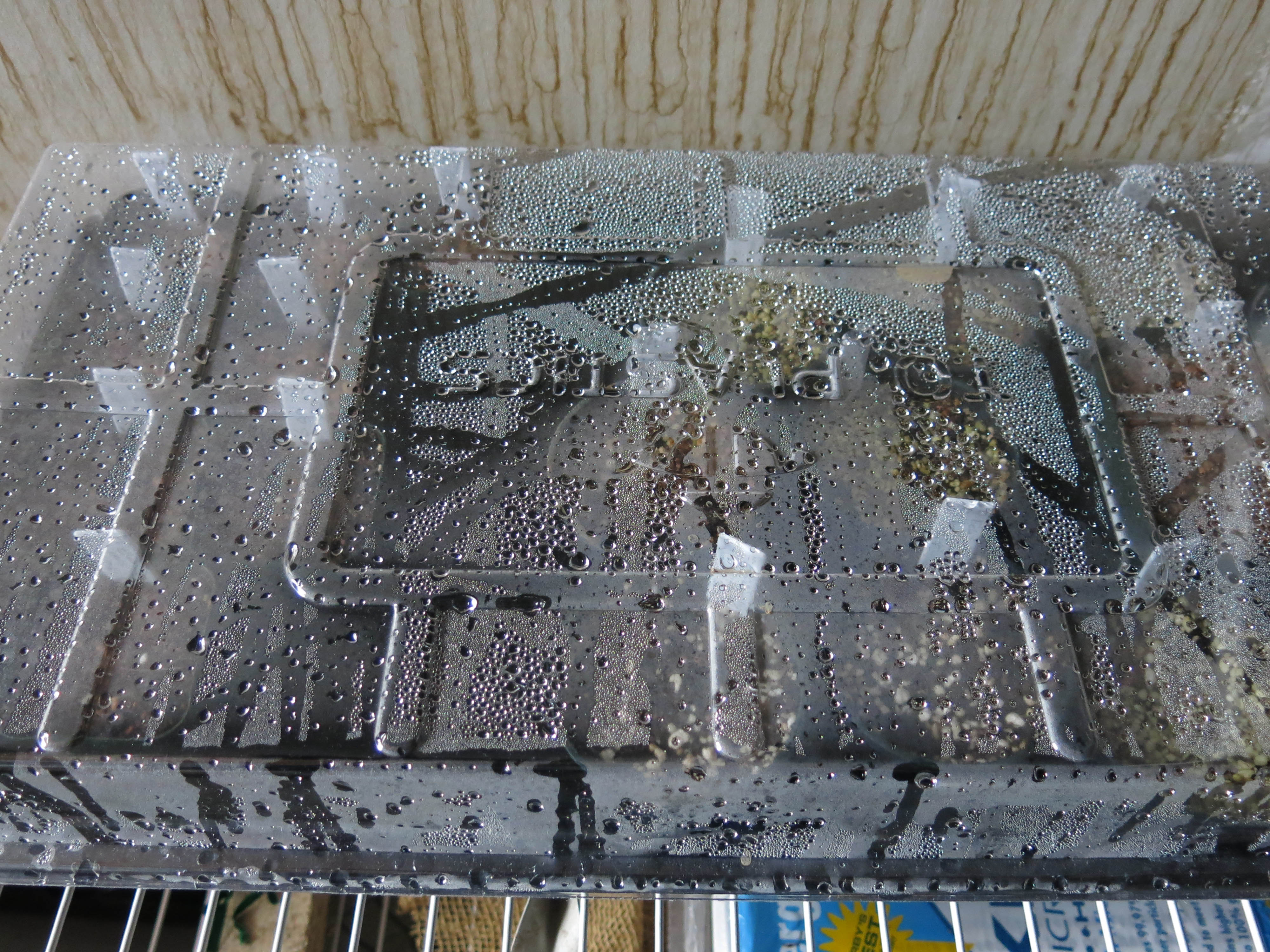When enough seeds have germinated, I move the pot to the flat above, just to be in a slightly drier environment.