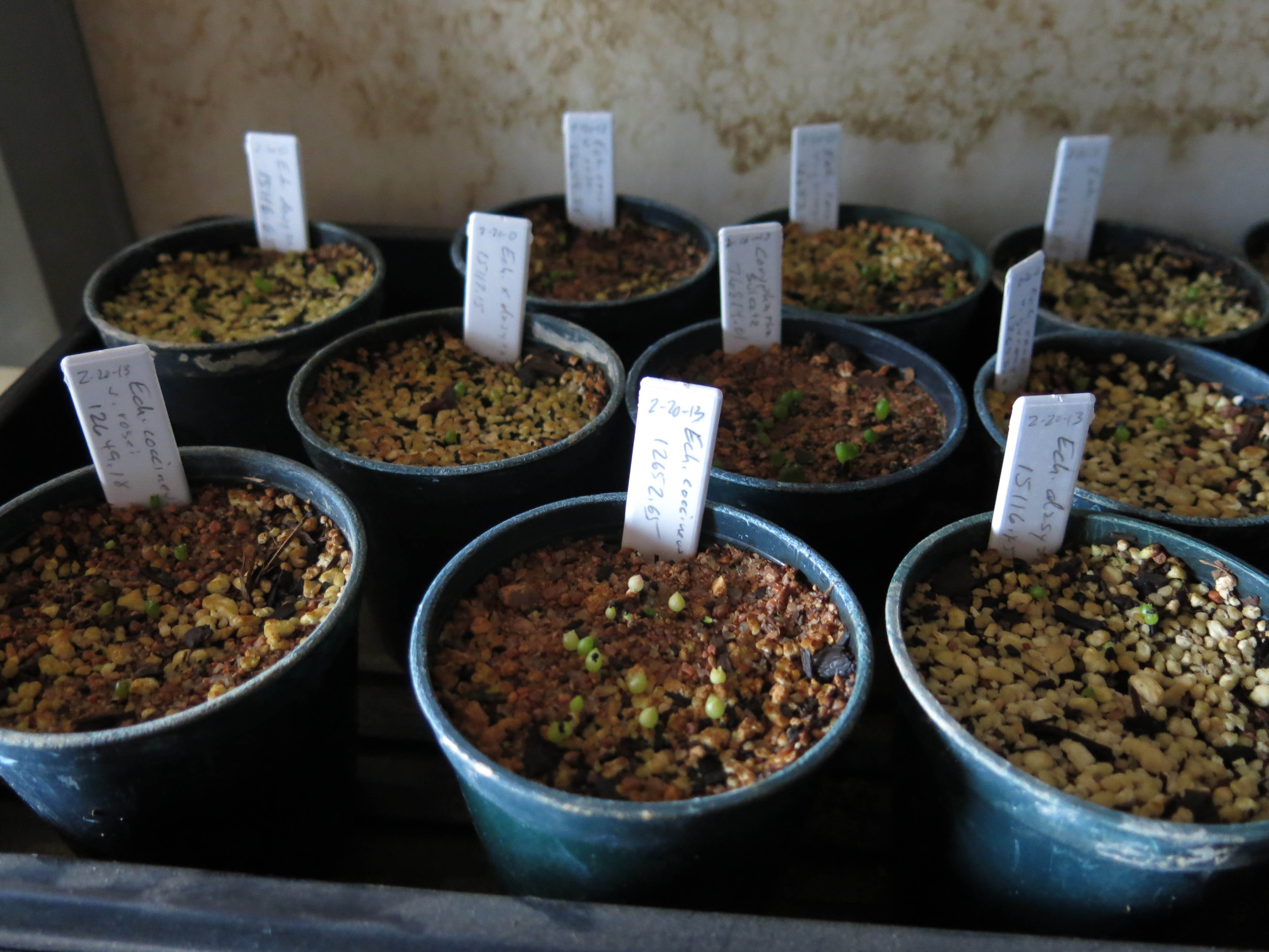 In order to make days like this bearable, I go down to the laundry room every so often to see how my cactus seedlings are doing.