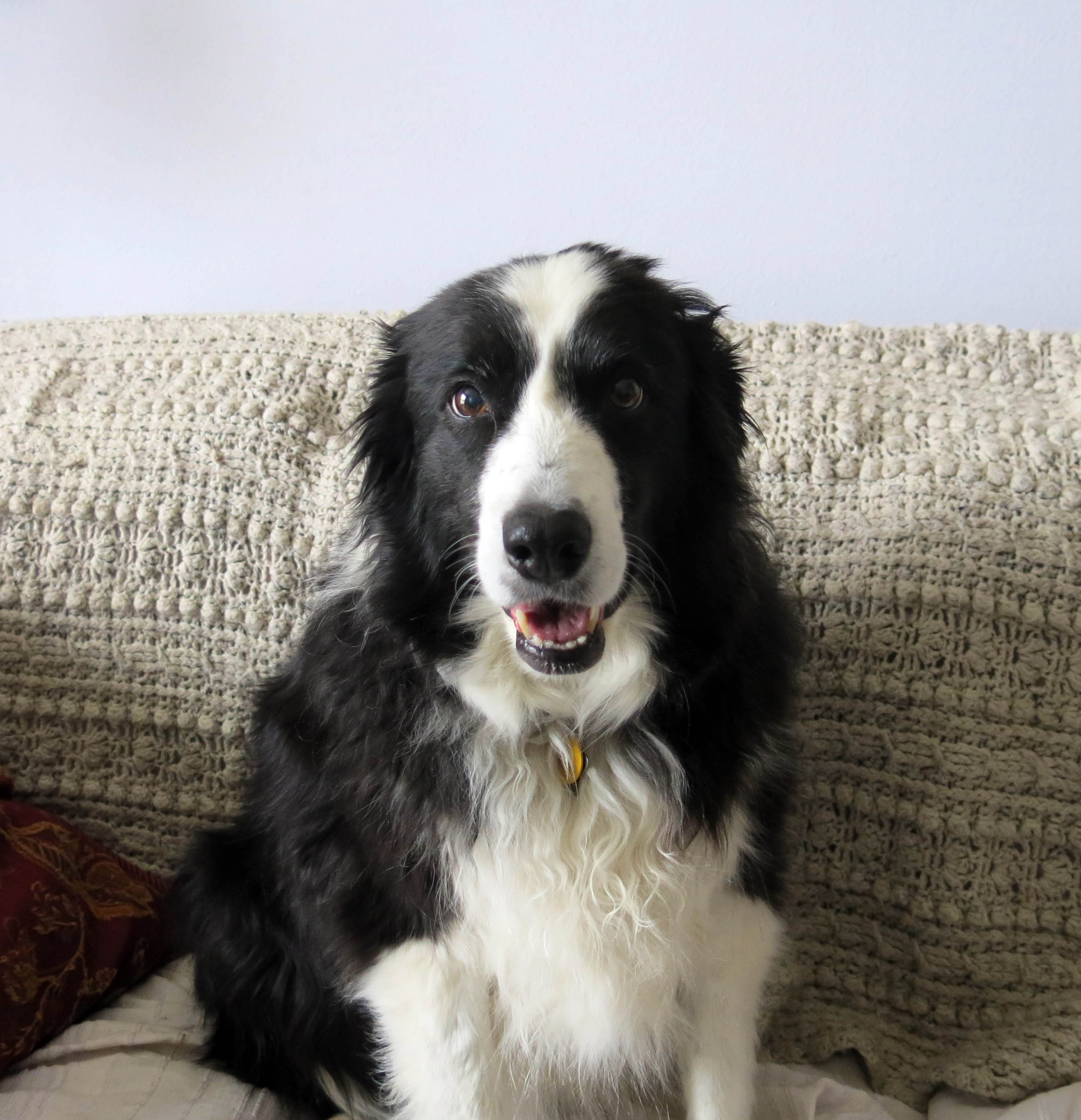 Hello again. It’s me, the dog, Chess. You may remember me from such excellent posts as “Drip Drop Drip Drop” and “Memory and Desire”, which were mostly about me. That’s why they were excellent, of course. Here I am on the couch, which is really old and creaky; it’s made of rattan and all the border collies who have lived here liked this couch. You can see that this weather puts me in a really good mood.