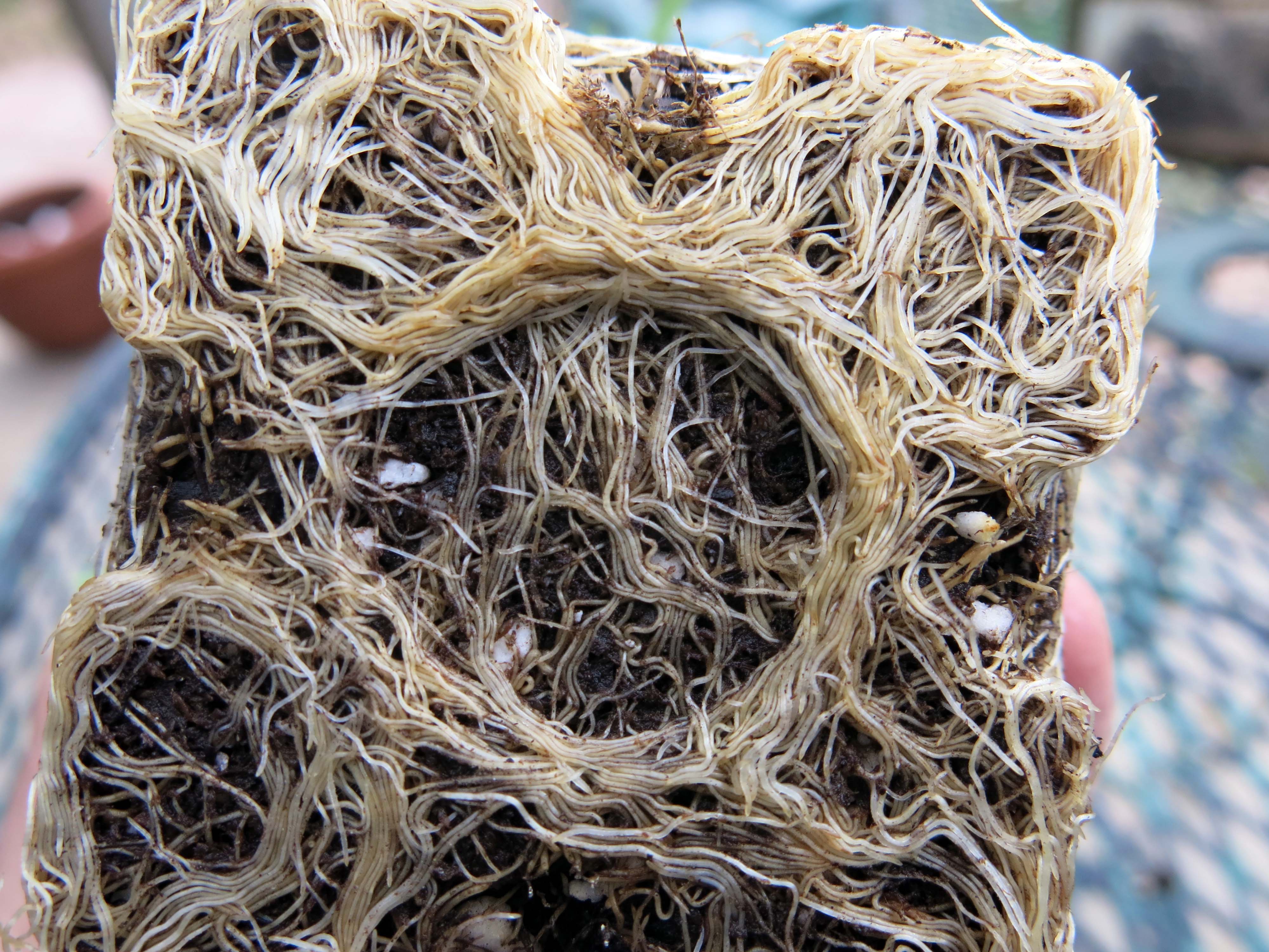 I picked up a few pots of Melampodium leucanthum, the “black foot daisy”, and now I have a couple of unbelievably fascinating things to relate. For one thing, it isn’t the same species as M. cinereum like some people say. For another, it is not named because its stems and roots are black.