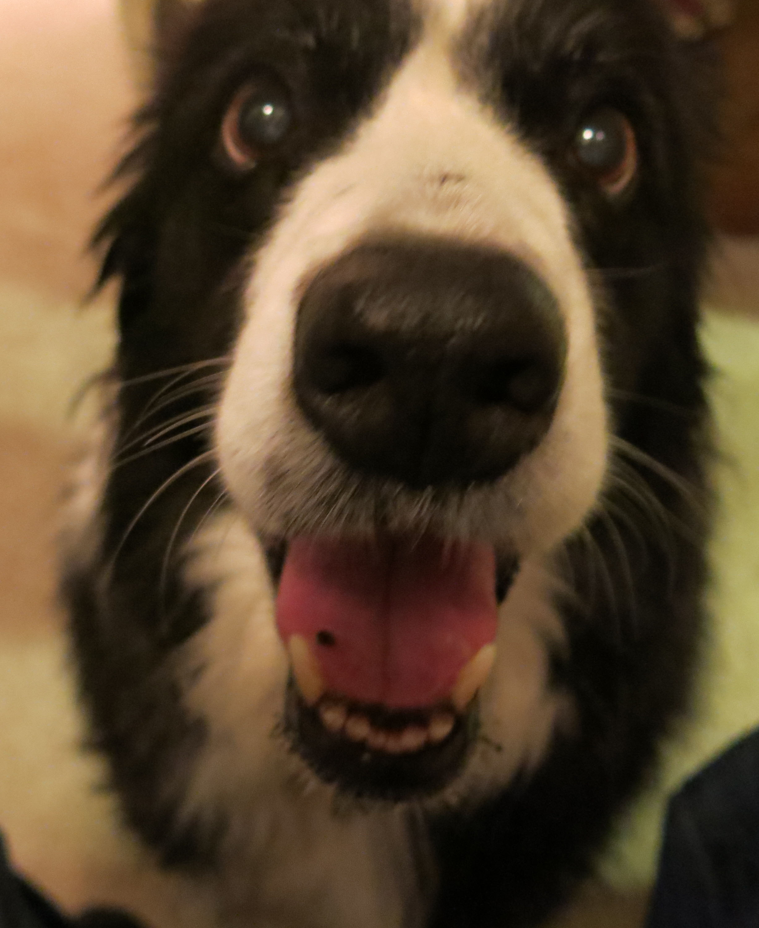 After it stopped raining I went out to eat some dirt. The guy I live with says purebred border collies shouldn’t be eating dirt, and he’s right; it’s potting soil, which is different. He took this really out-of-focus picture to try to embarrass me, but it’s not going to work, since I’m not the one who can’t focus. He says I look like a dirt-eating maniac but I prefer the term casual geophagist.
