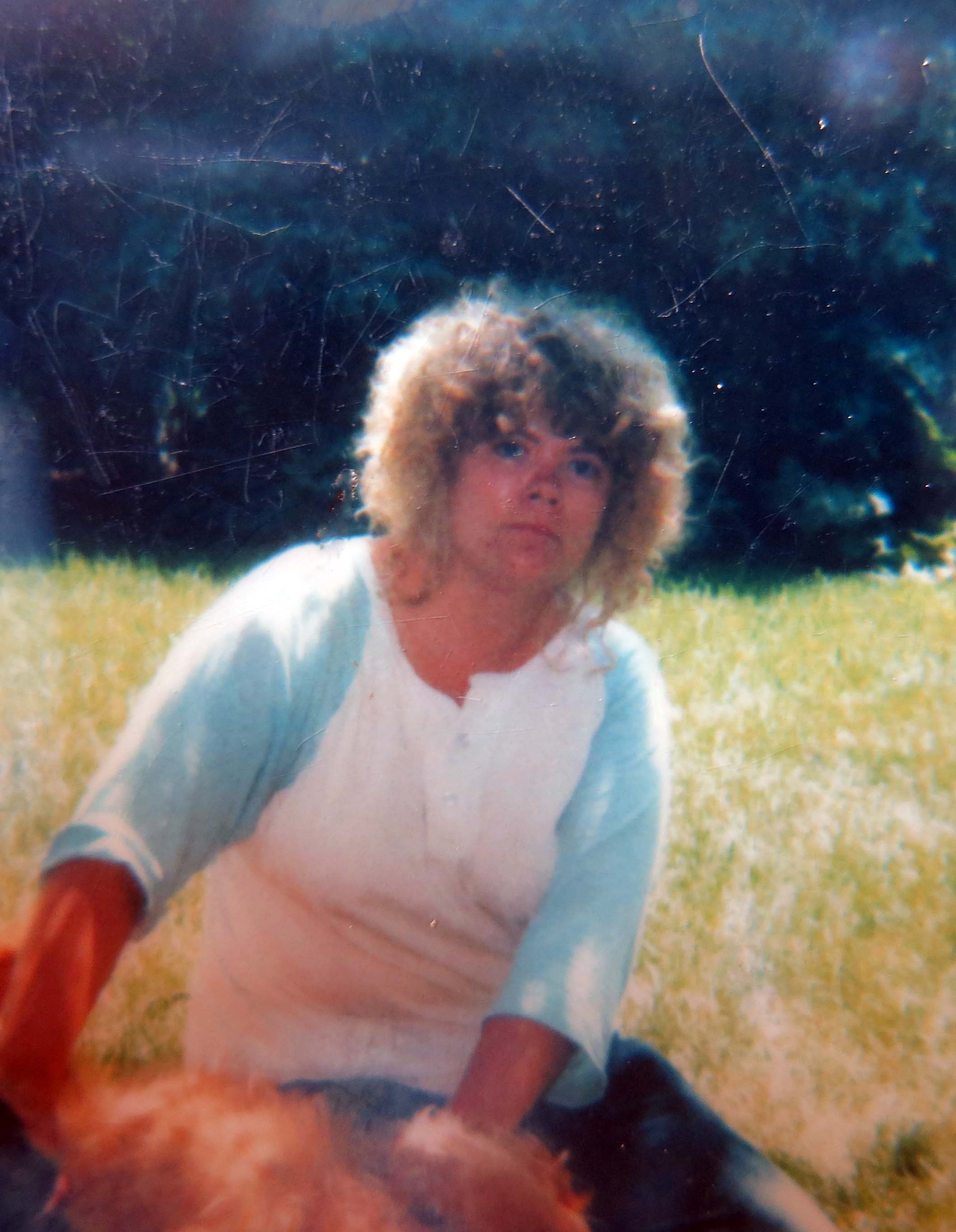 Here’s an old Polaroid picture of my mommy. She’s tickling a dog’s tummy. She was really good at spoiling dogs. The picture was in really bad shape; this was probably taken in late May because they met in May. That was in 1982, long before I was born. It was love at first sight, and the guy I live with says this picture still takes his breath away.