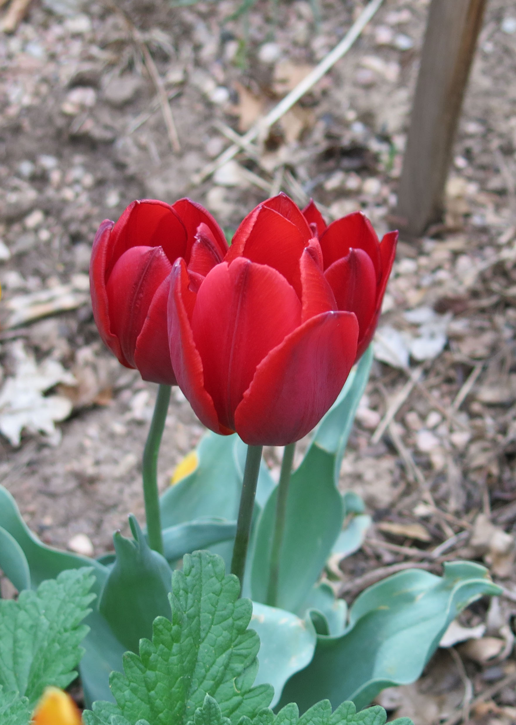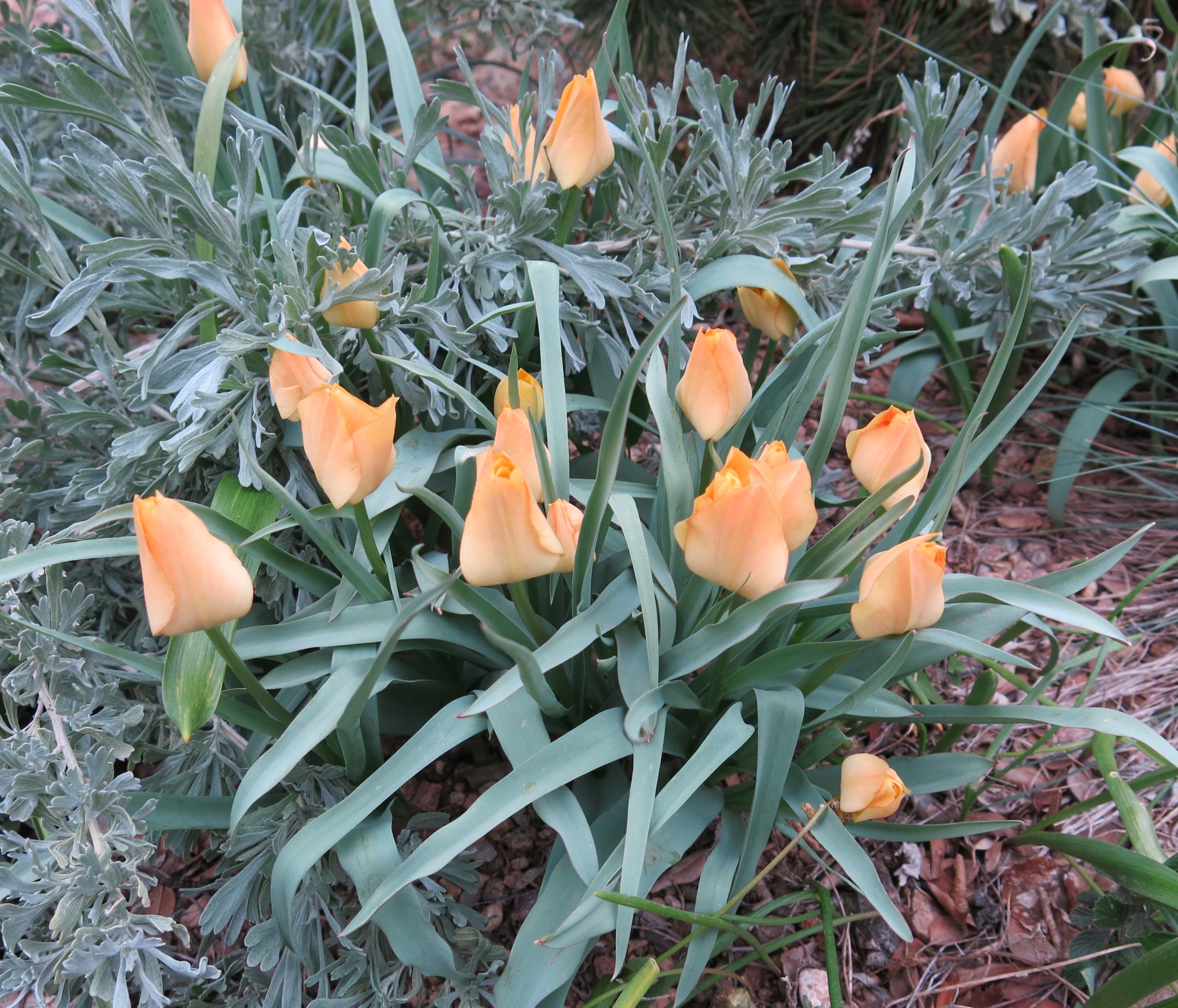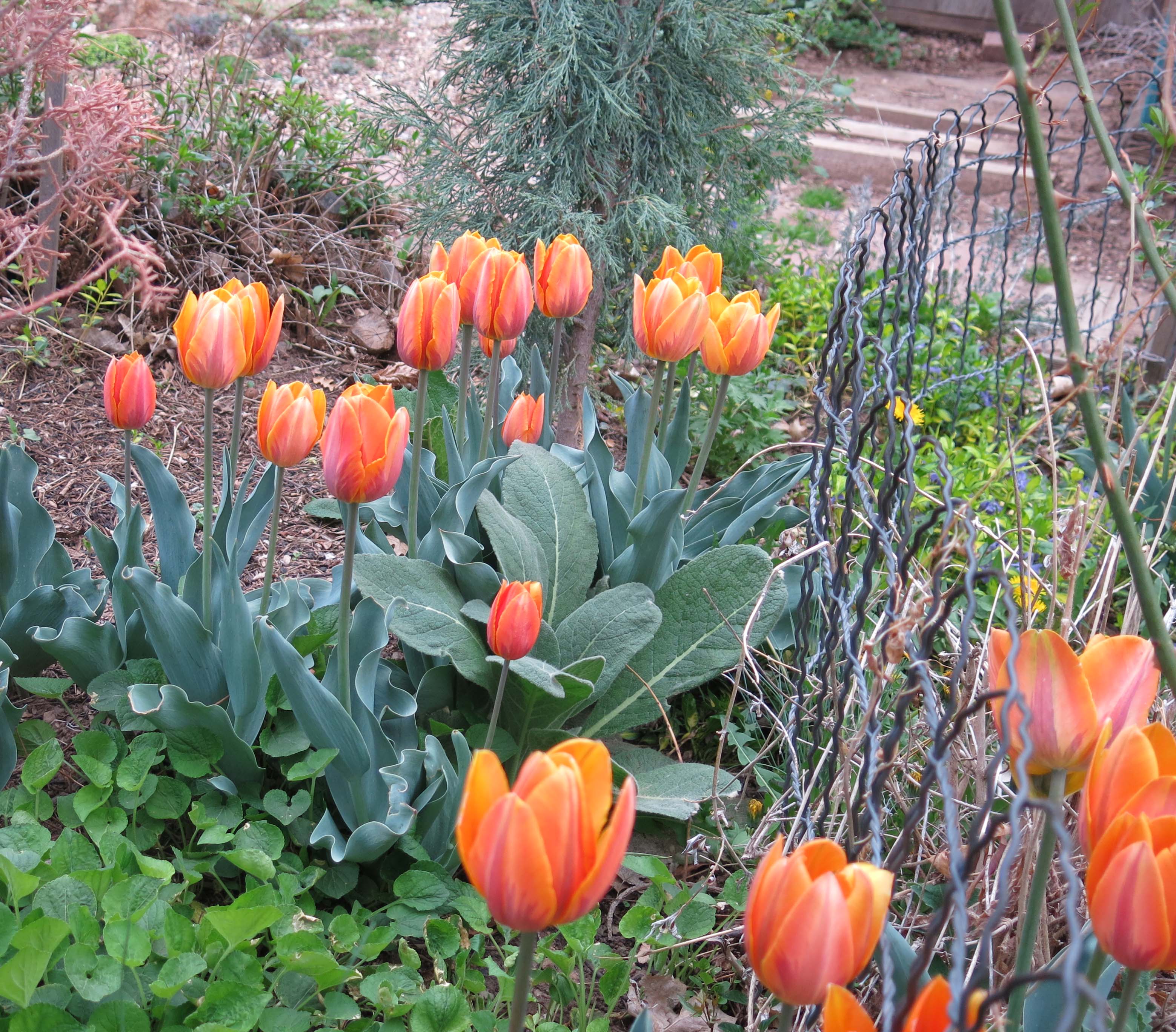 Most of the regular tulips froze this year. No loss, really, but there’s a lot of messy foliage for someone to clean up.