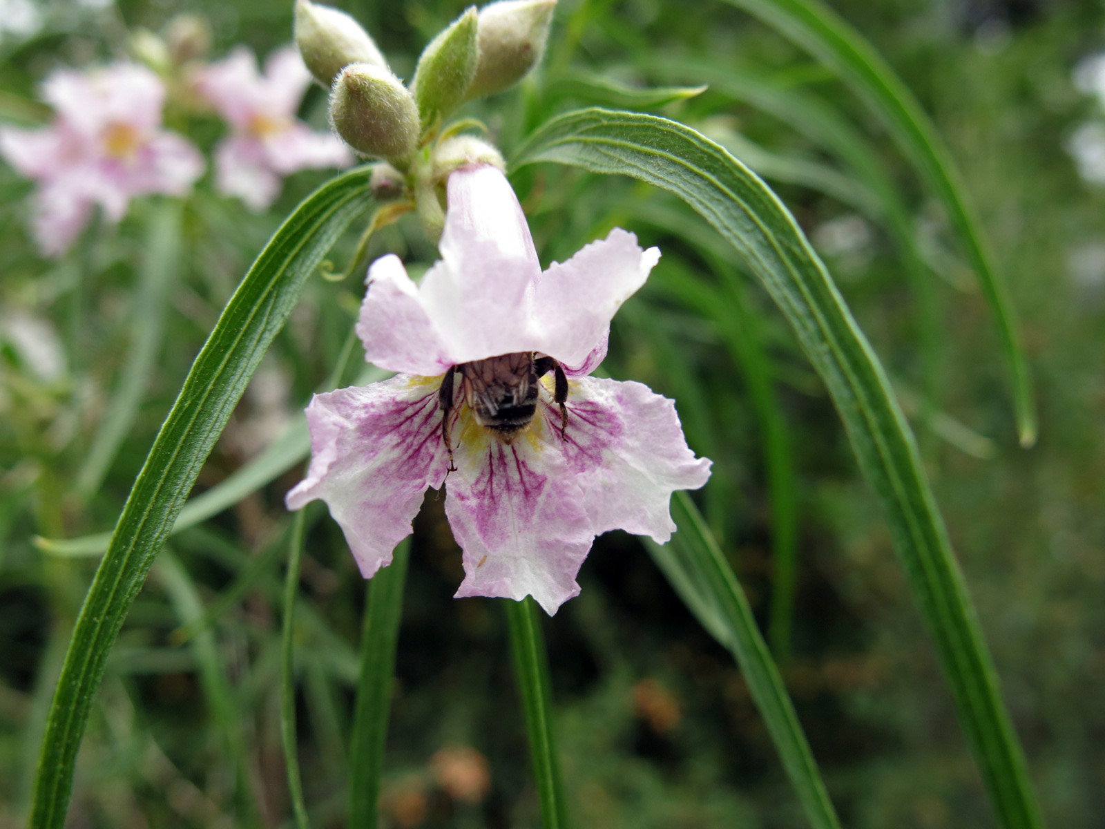 This is a flower from one of the desert willows in the front yard. That’s a bee butt, if you didn’t know.