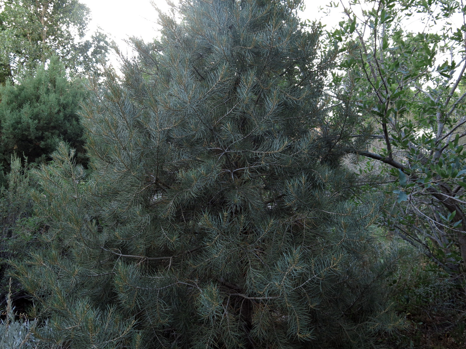 Back on the other path, on the west side, closest to the house. Pinus monophylla, planted way too close to the oak, but the guy I live with says plants were meant to be planted too close together. I think he’s just making this up.