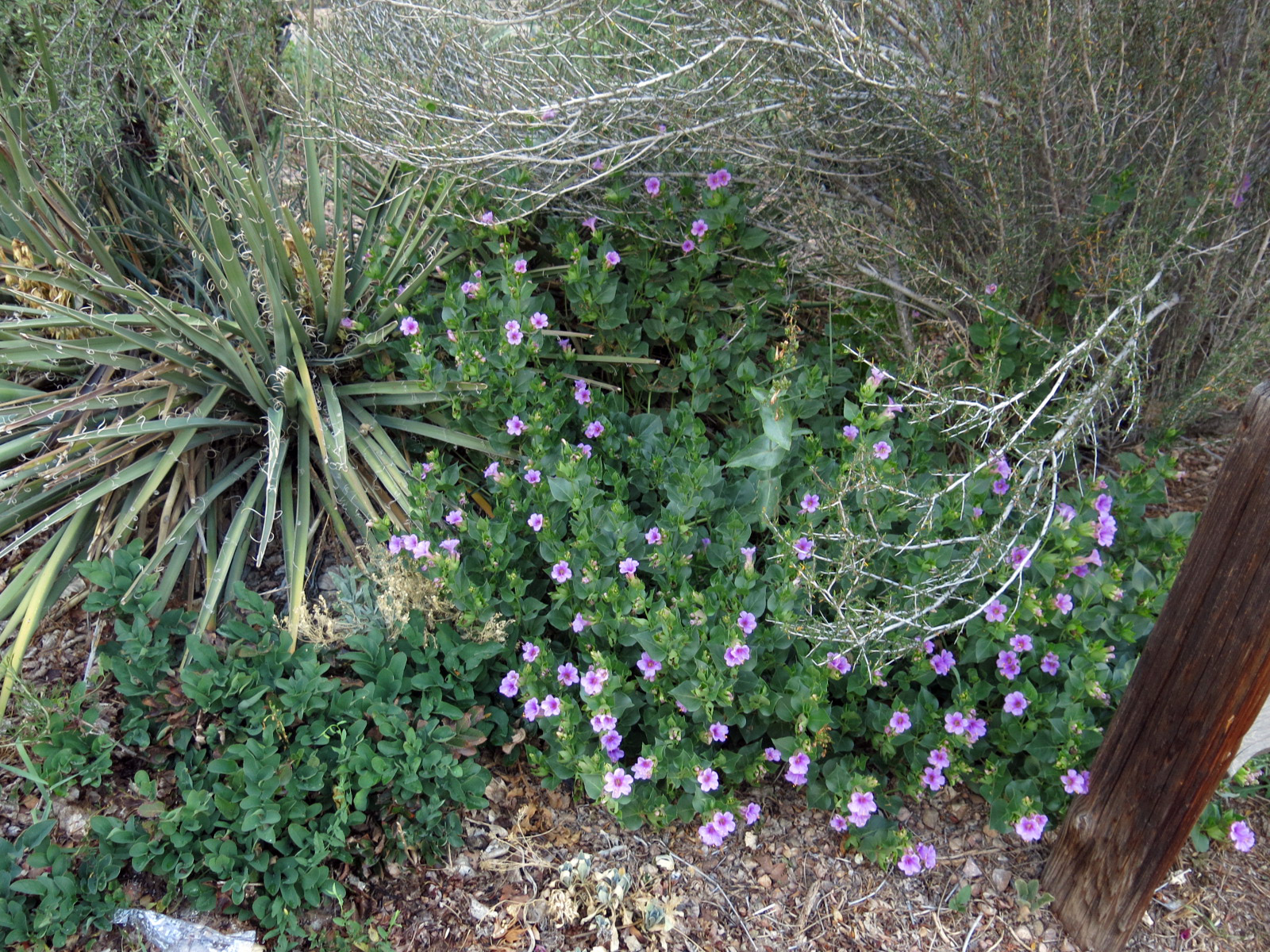 Yucca baccata and the desert four o’clock, Mirabilis multiflora. It liked all the snow in April.