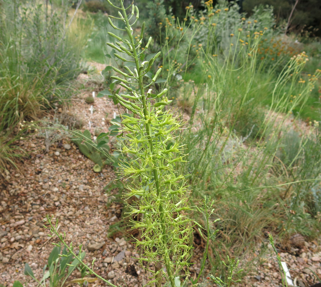 There are hardly any flowers in the garden right now; it hasn’t rained in a very long time, and the guy I live with thinks dry gardens shouldn’t have many flowers at this time of year (my mommy disagreed, and liked to set sprinklers while he was at work). Here, though, is something slightly out of the ordinary, Stanleya viridiflora.