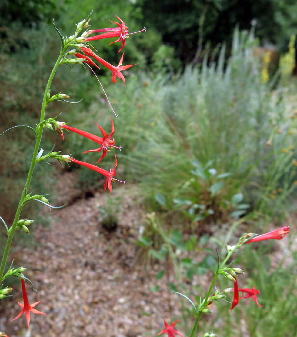 A little background first. The guy I live with says these gilias, and there are quite a few that are similar, some with orange or pink or white flowers (which strikes me as odd since this is a hummingbird-pollinated plant) are like the “essence of the West”, and that he wanted drifts of them all throughout the garden, but only got this one. I think it’s possible that someone ate all the other seeds since the guy I live with seems to be incapable of enforcing any sort of law against intruders, and that this fall he’ll just have to sow ten times as much seed.