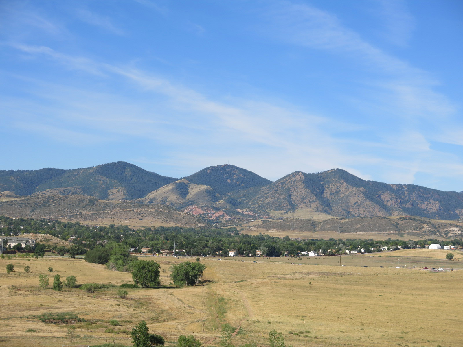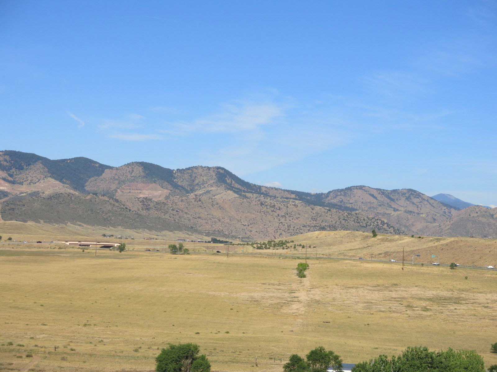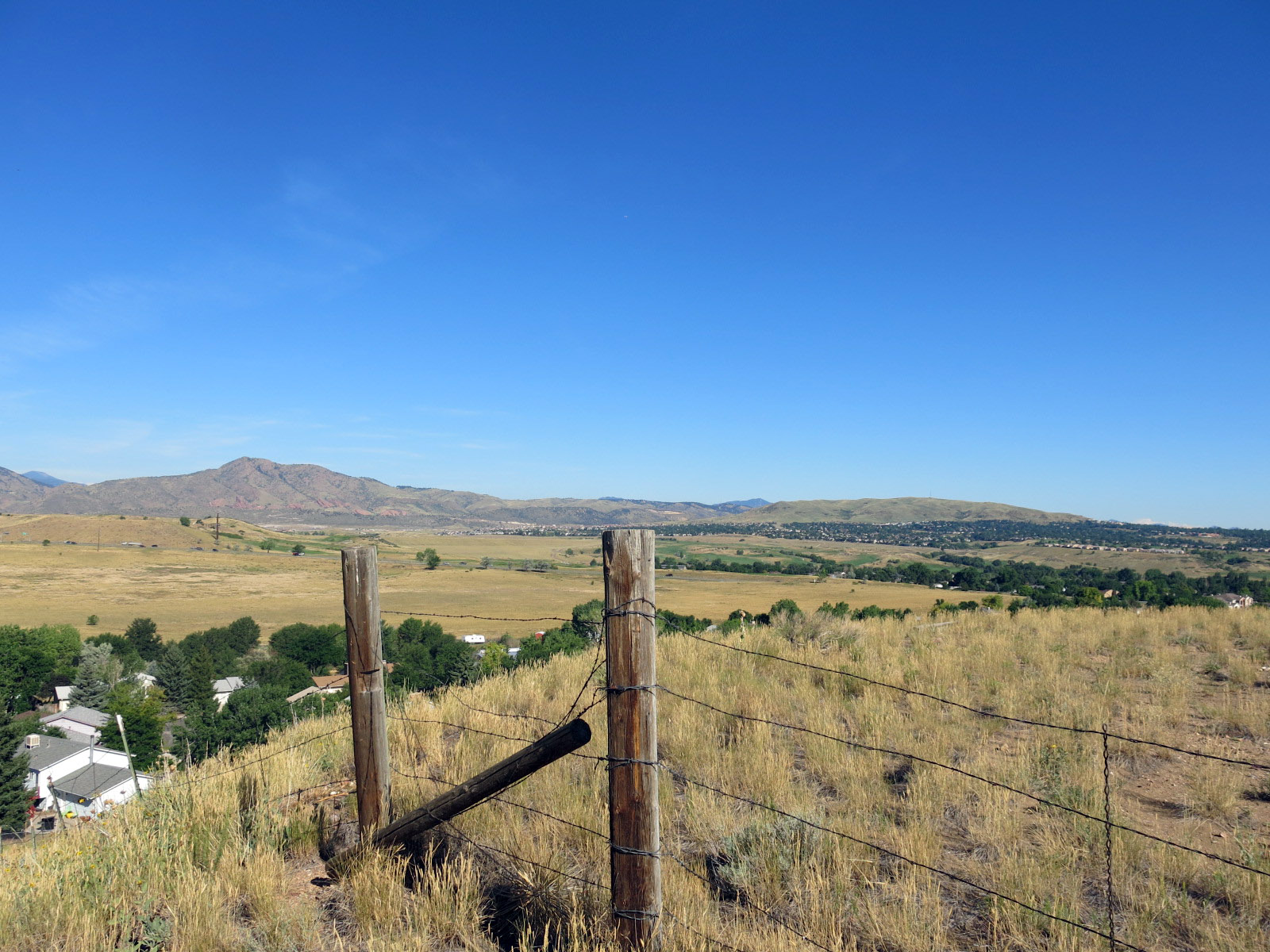If you embiggen the first picture taken from the mesa, the one with the barbed wire featured prominently, you can see Red Rocks Amphitheater, where a famous 60s rock group called the Beatles played once. The guy I live with says they had long hair and society almost collapsed because of it.