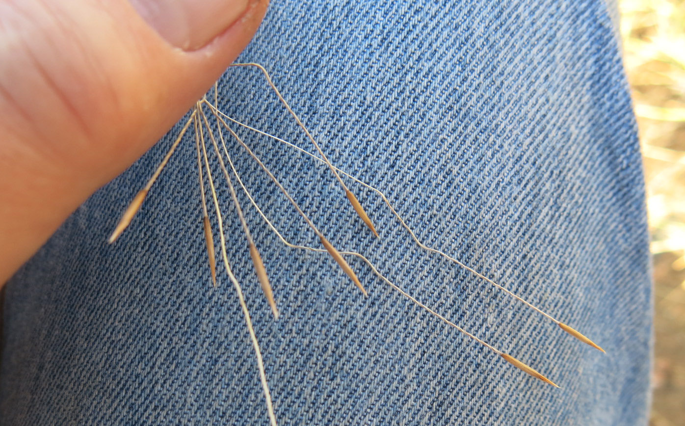 The only good thing about those needle-and-thread seeds is that they’re easy to see in my dog’s fur, and remove…unlike the myriad others. Houndstongue seeds, for example. The worst, and they get all in the carpet.