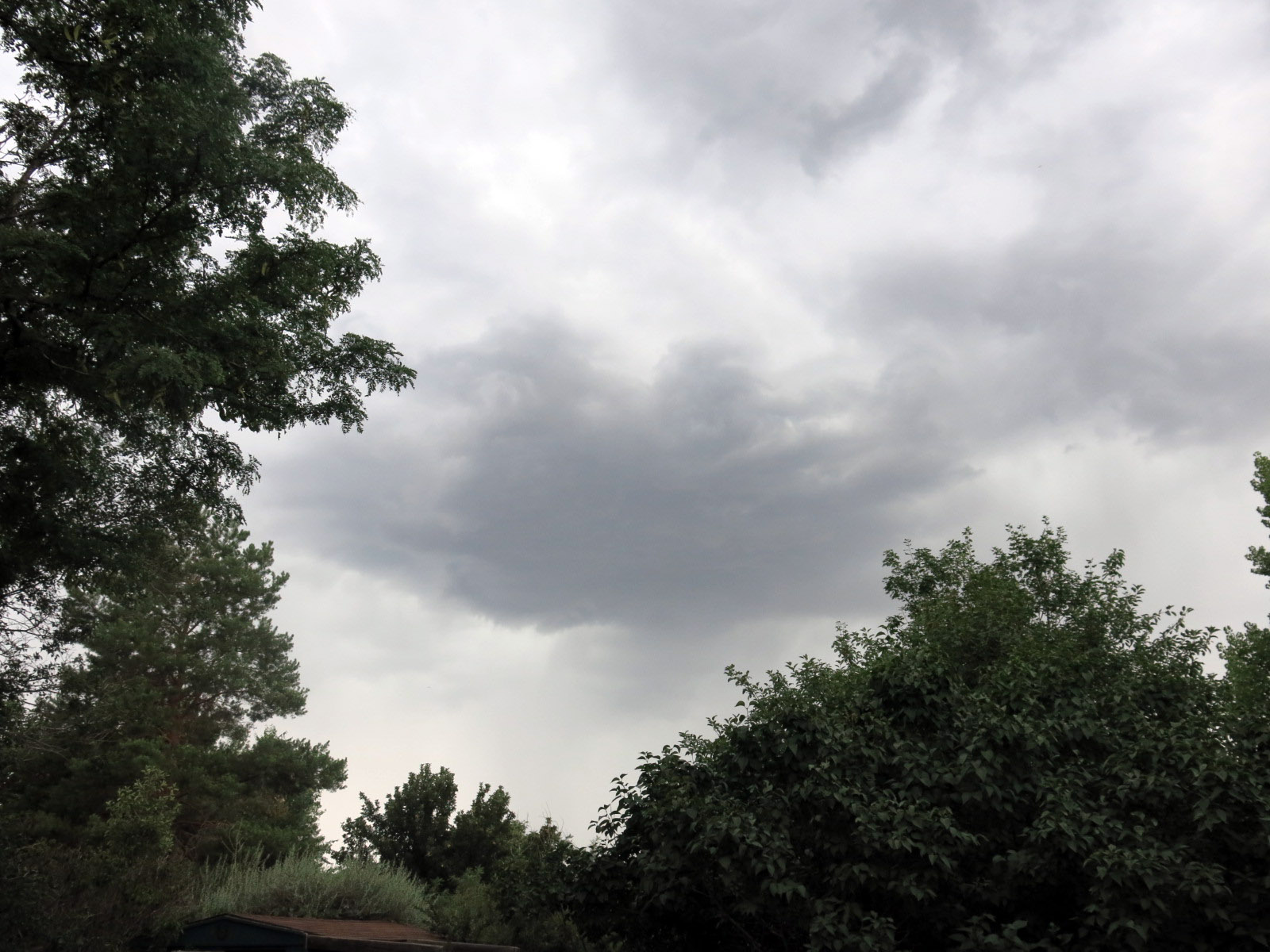 And, oh, let’s see, it got really scary this afternoon, the way it does every afternoon at this time of year now. The guy I live with says it didn’t used to, and even though I wonder if “it didn’t used to” is real English, the good old days do sound better to me. He says that August used to average 8.3 days with thunderstorms, but I’ve heard thunder every day but one so far. I even heard it when we started out for our afternoon walk, and I had to go back inside. Those stories of seeing my skeleton if I got hit by lightning were not encouraging. We waited for a while and then the storm blew to the east and we were able to go on our walk after all. It hardly rained at all. Whew, huh.