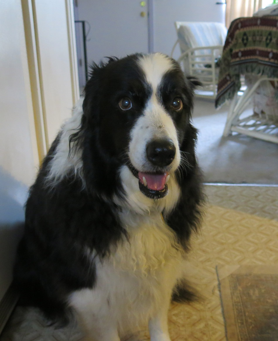 Greetings everyone, it is I, Chess the purebred border collie, here again to entertain you with the most delightful and informative posts a border collie can provide. You may remember me from such posts as “He Fixes Something” and “Tick Talk”, among others. Here I am in a characteristic pose. You can also see the ancient creaky rattan furniture (even older than the guy I live with, if you can believe that, and fun for border collies to climb onto), and I would suggest that you note the colors of the wall behind me. My mommy picked out those colors, but they’re full of portent at the moment. Symbolic, even.