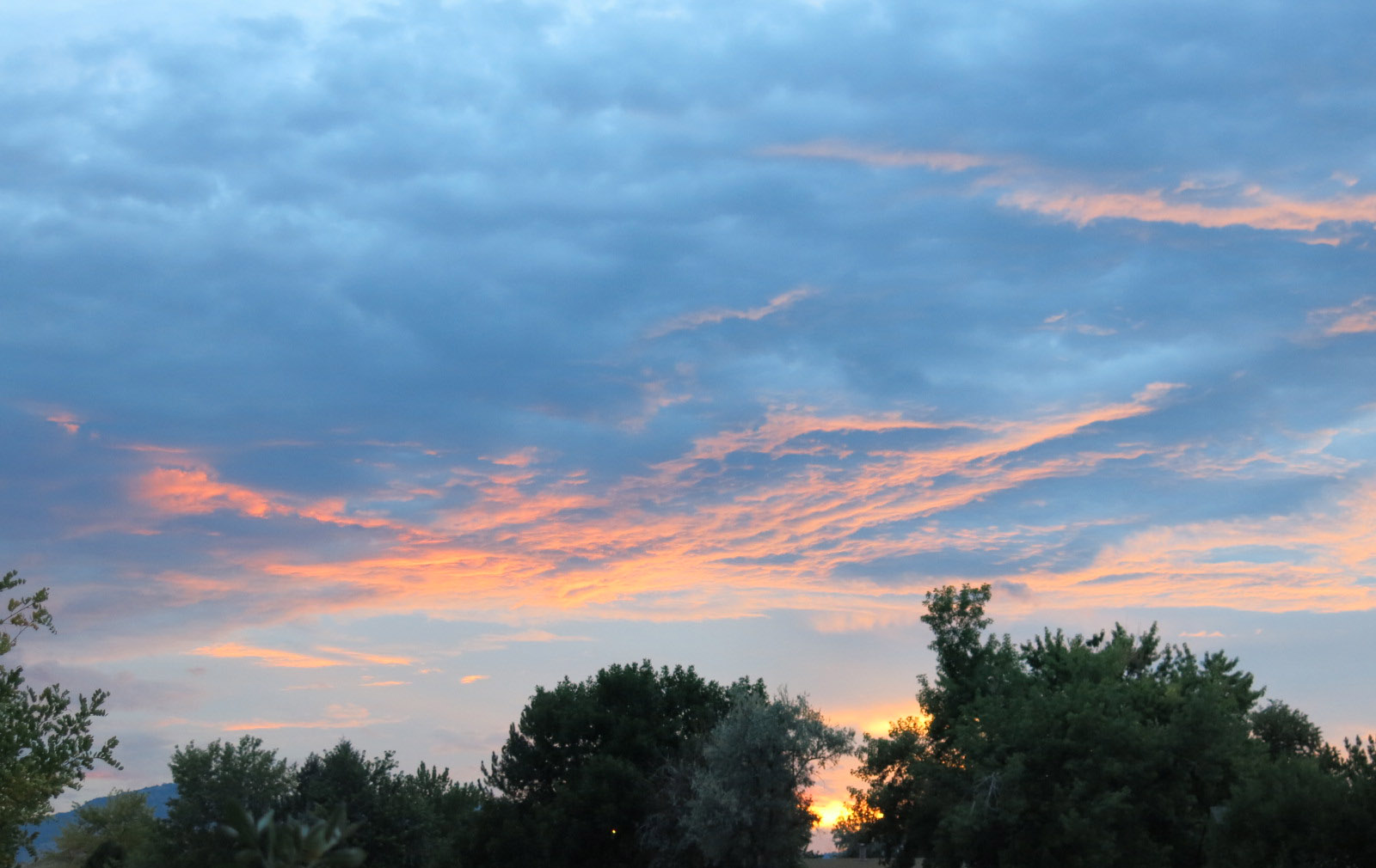 I hope this wasn’t too boring. I’ll leave you now, with a nice picture of the sunset. Off to the right, an owl is hooting in the tree, but, like so many other things, you’ll just have to imagine it.