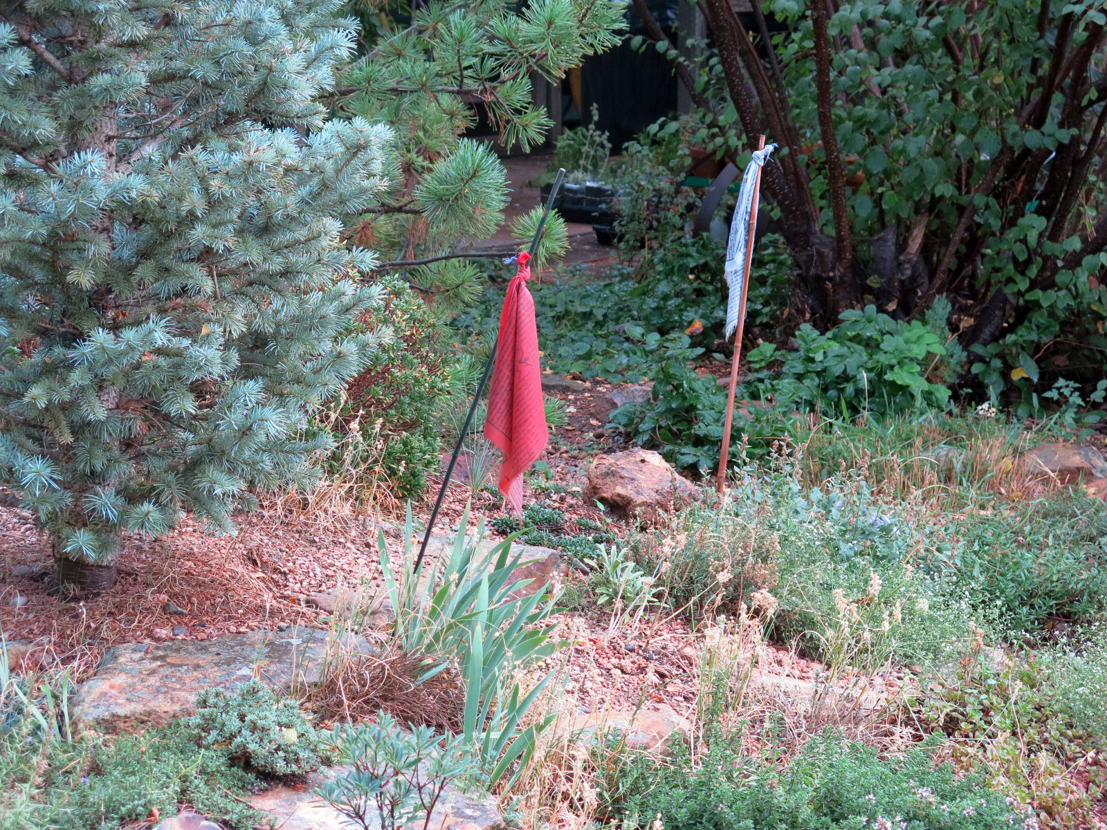 There’s also been a lot of planting going on. You can tell by the flags he puts up. These are to remind him to water plants. He’s run out of flags now. The lighting is weird because it was all stormy and thundering when he took these pictures.