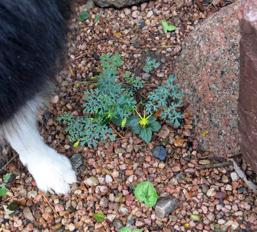 Your person must be out surveying the wet garden pretty closely to have spotted the Aquilegia chaplinei. I notice your measuring paw is unsullied by the wet, or dirt or leaves — you must be one fastidious dog. I hope you received extra treats for your service as a comparison. In fact, I hope it was a hot treat. Kitchens should be places of warmth and comfort during storms, particularly prolonged periods of dark and rain, sometimes with thunder.. Dogs should have a comfy spot for withdrawal.