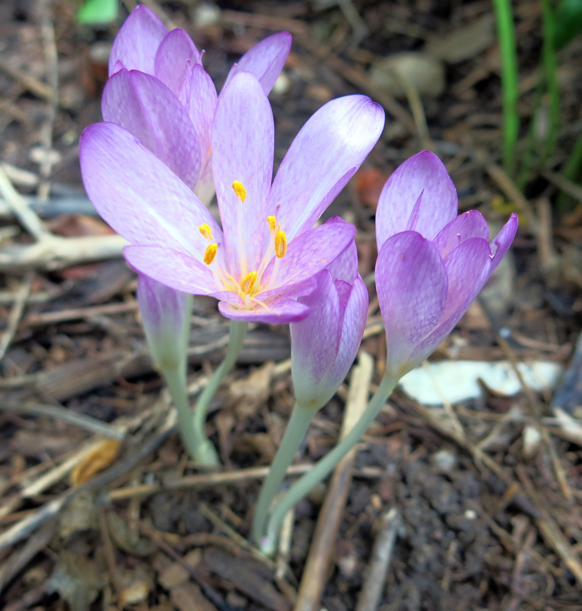 Well, both colchicums and crocuses start to bloom at this time of year. Colchicums have six stamens and crocuses three. Hopefully we’ll have zillions of crocus pictures in the next three or four months.